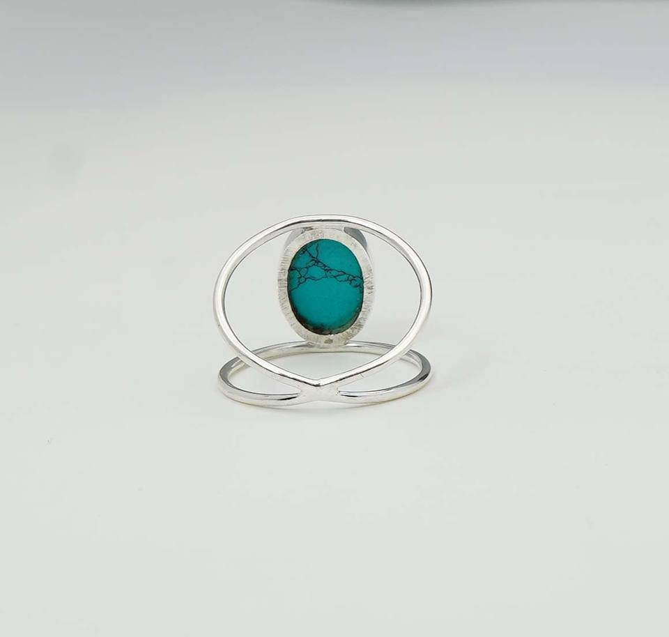 แหวนสองชั้นประดับพลอยสีเงินสเตอร์ลิง925สีเทอร์ควอยซ์พร้อมฐานหนามเตย