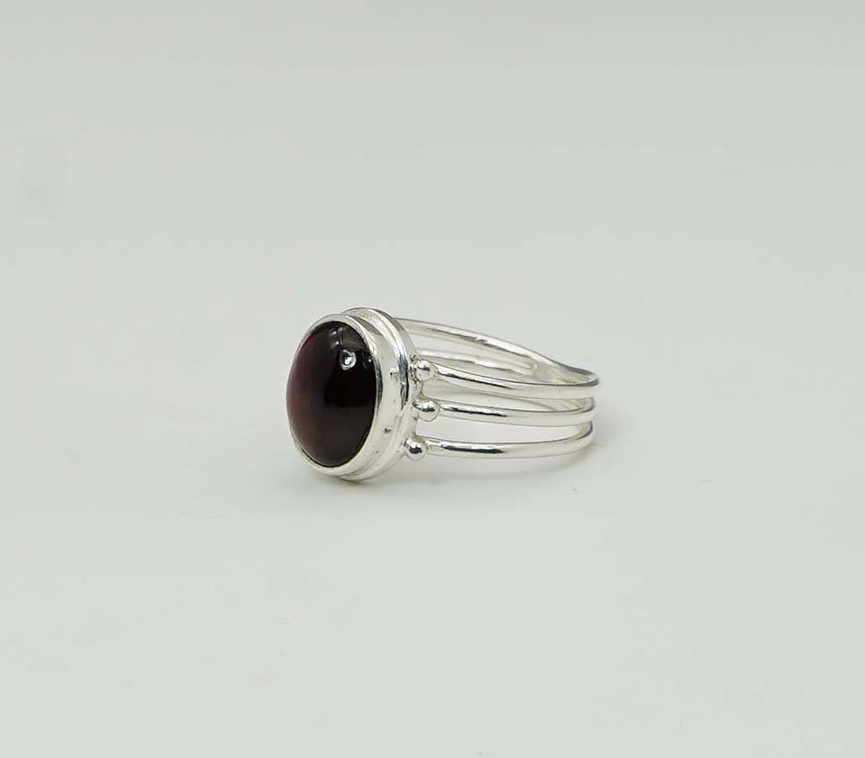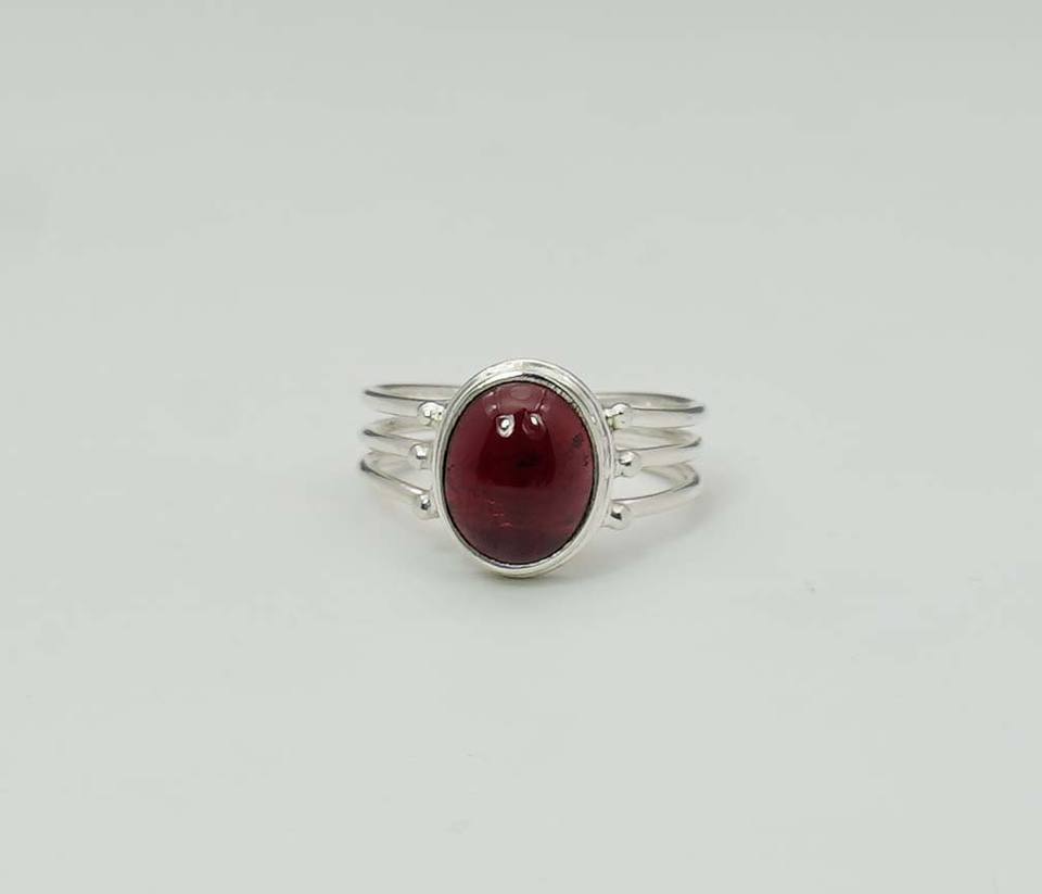 925เงินแท้เดือนพลอยโกเมนพร้อมฐานหนามเตยรูปวงรีหลายวงแหวนก้านแหวนหลายวง