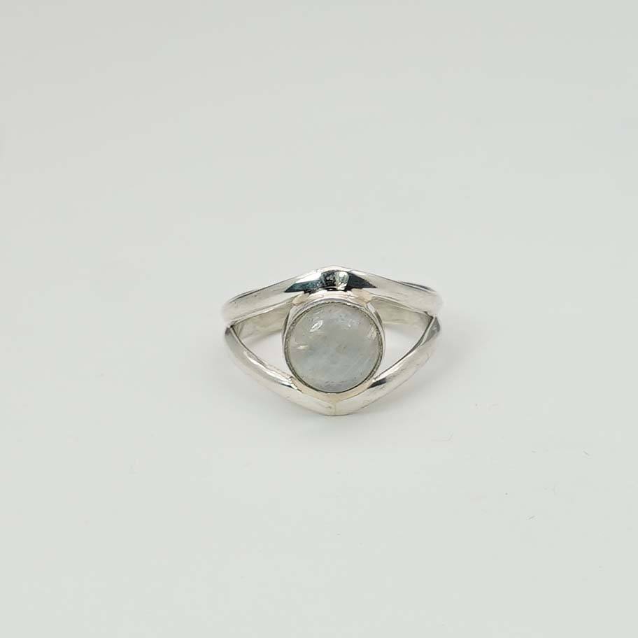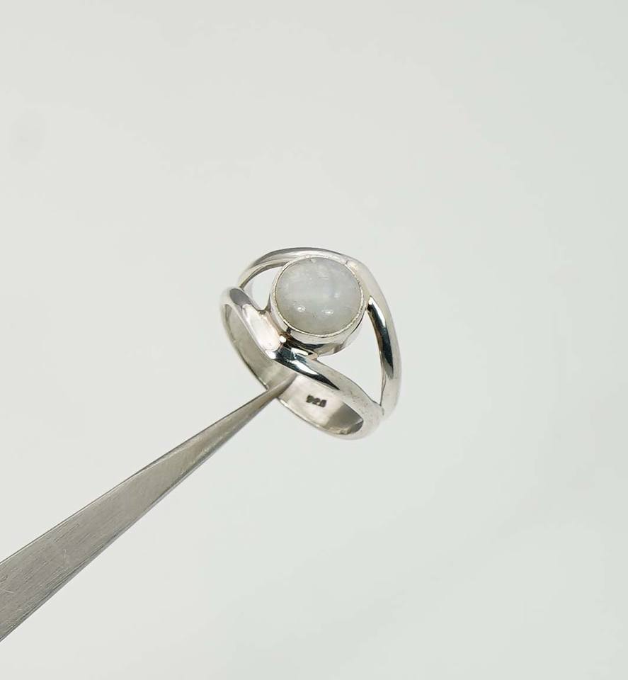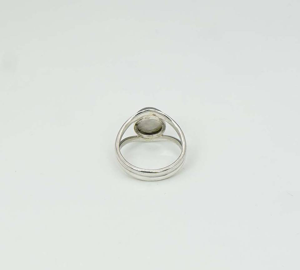 925หินมูนสโตนสีรุ้งพร้อมกรอบและแหวนรูปตาทำจากเงินสเตอร์ลิงเดือนจูเน่