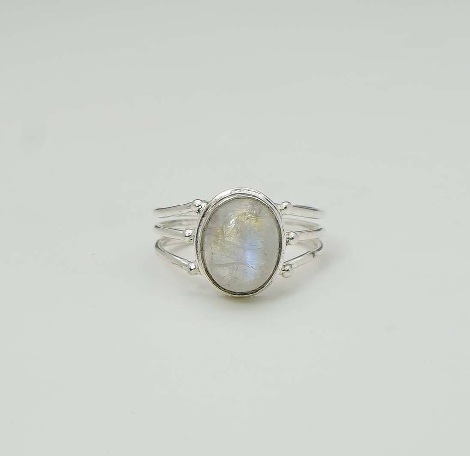 แหวนก้านหลายสายประดับพลอยสีรุ้งประดับเพชรสีเงินสเตอร์ลิงเดือนจูเนสโตน925