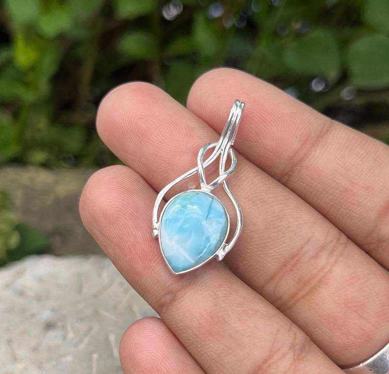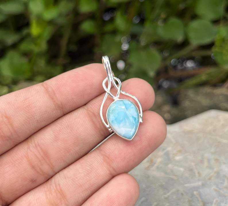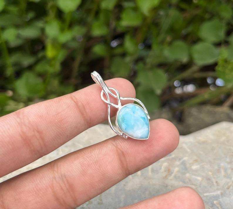 จี้รูปลาริมาร์สีเงินสเตอร์ลิง925ลูกแพร์อัญมณีรูปกุหลาบตัดปีกรูปทรงได้รับการรับรองจากการผลิตทุกวันสร้อยคอใช้ได้ทั้งชายและหญิง