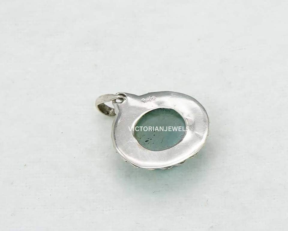 925สีเงินสเตอร์ลิงเดือนมีนาคมหินสีฟ้าอมเขียวพร้อมฐานหนามเตยสไตล์ดอกไม้จี้เสน่ห์