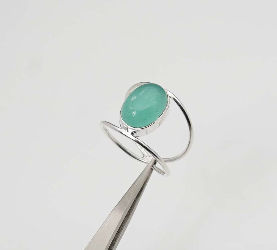 แหวนคู่อัญมณีสีเงินสเตอร์ลิงเดือนมีนาคมทำจากหินควาคาเซโดนียกับการตั้งค่าทรงรี925