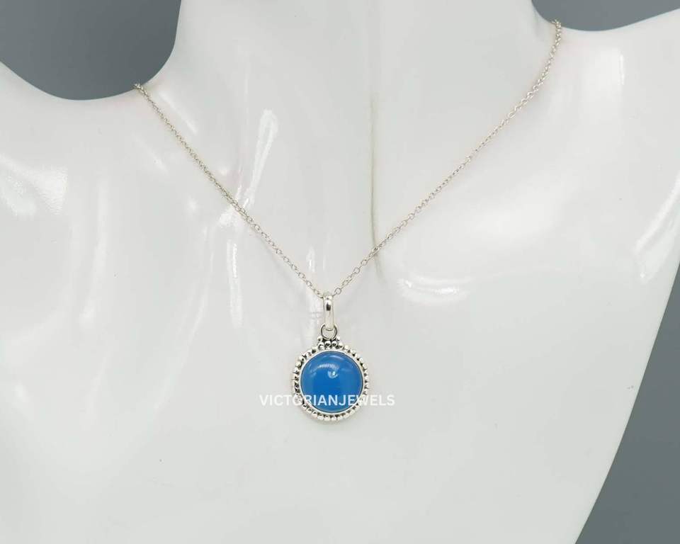 925เงินสเตอร์ลิงเดือนพฤษภาคมหินโมราสีฟ้ากับการตั้งค่ากรอบจี้เสน่ห์รูปทรงกลม