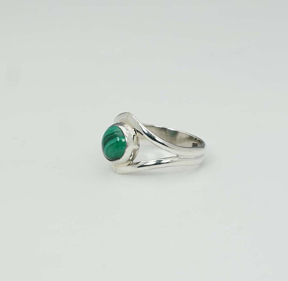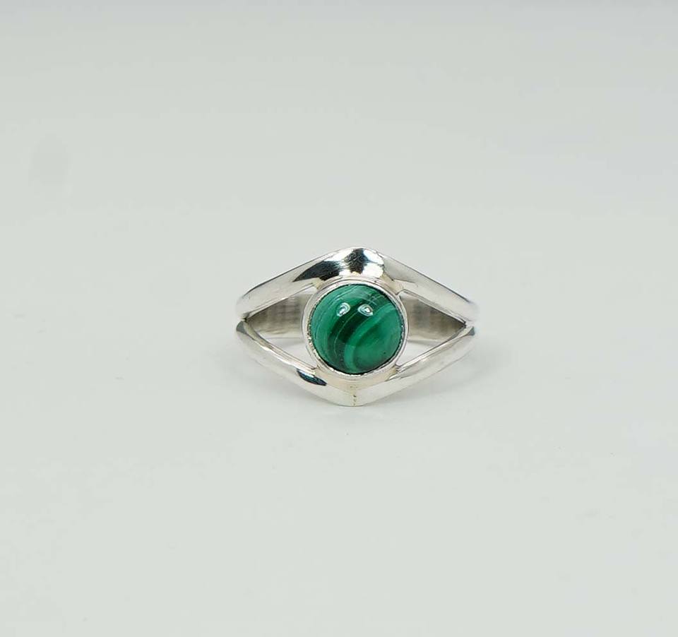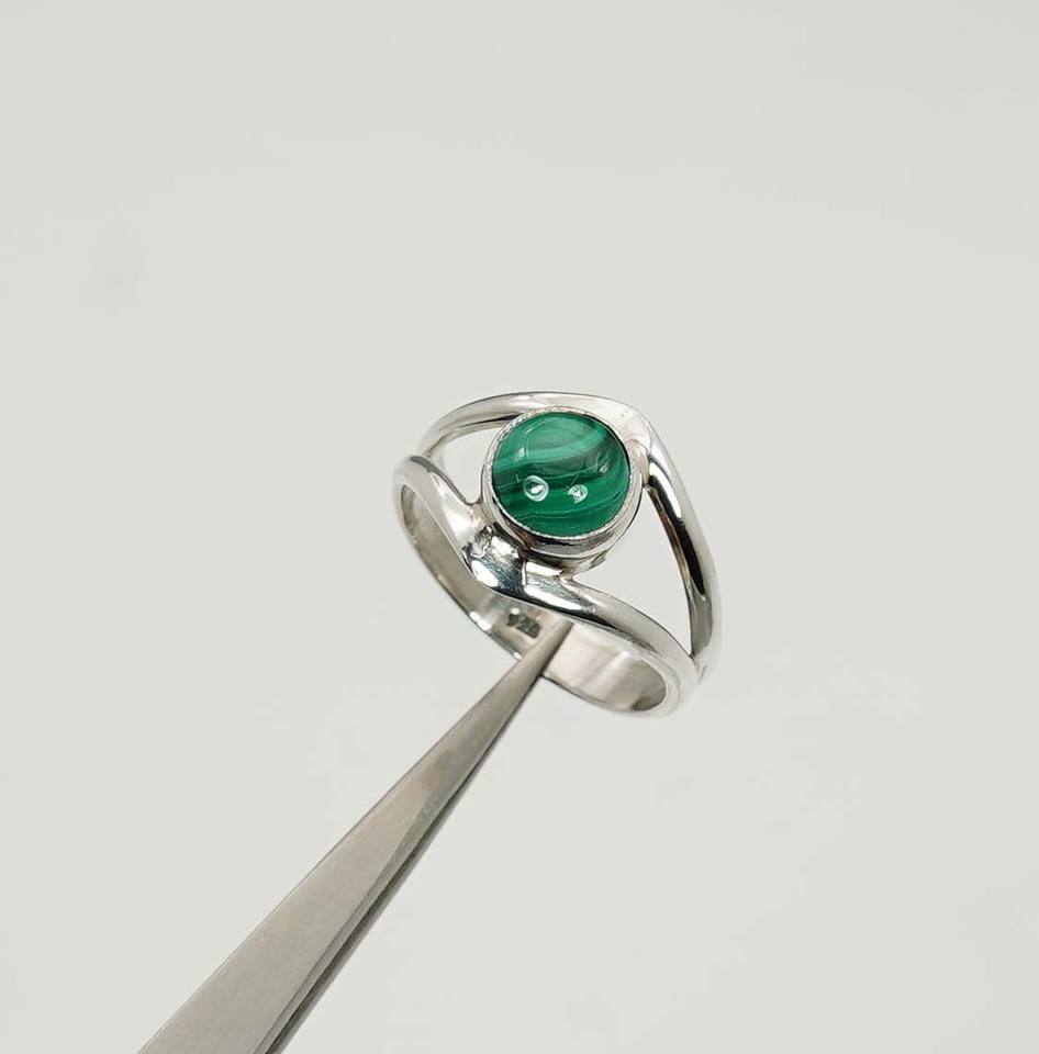 925เงินแท้เดือนพฤษภาคมหินมาลาไคต์พร้อมวงแหวนรูปตาตั้งขอบ