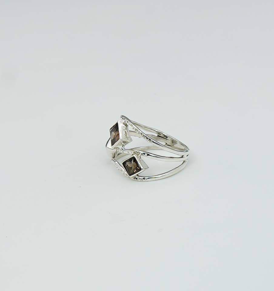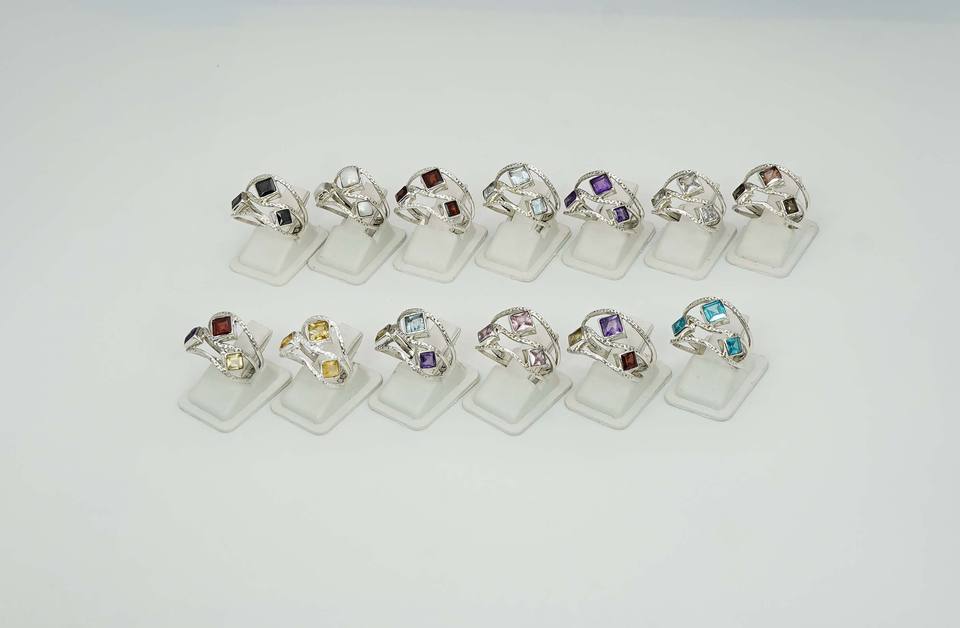 แหวนพลอยหลากสีสีสีเงินสเตอร์ลิงพร้อมขอบตั้งเป็น925อัญมณีควอตซ์เจียระไนเพชรแบบเจ้าหญิง