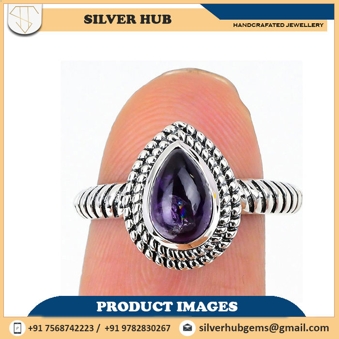 แหวนอัญมณีอเมทิสต์ธรรมชาติสีเงินสเตอร์ลิงทำมือแหวนเครื่องประดับชั้นดีของขวัญวันวาเลนไทน์สำหรับน้องสาว925