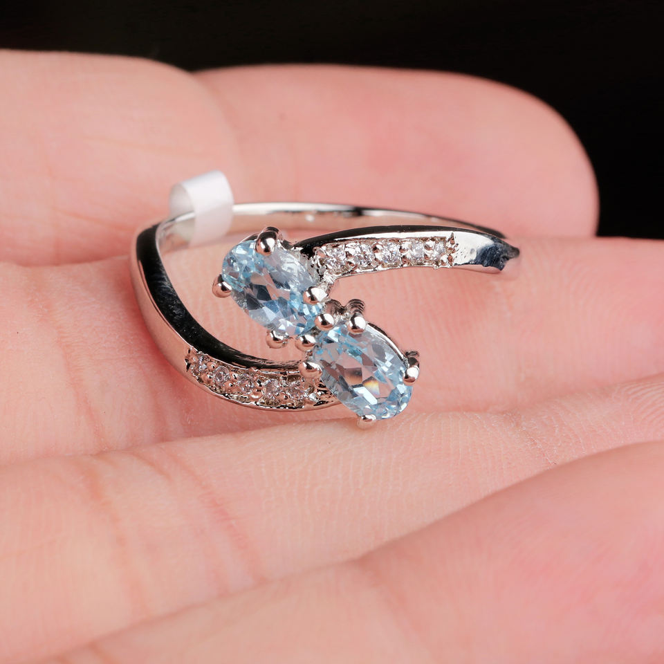 แหวนแต่งงาน925สีเงินแท้ปรับแต่งได้สีฟ้าบุษราคัม CZ อัญมณีคุณภาพสูงคลาสสิกสำหรับปาร์ตี้ | ขายส่ง
