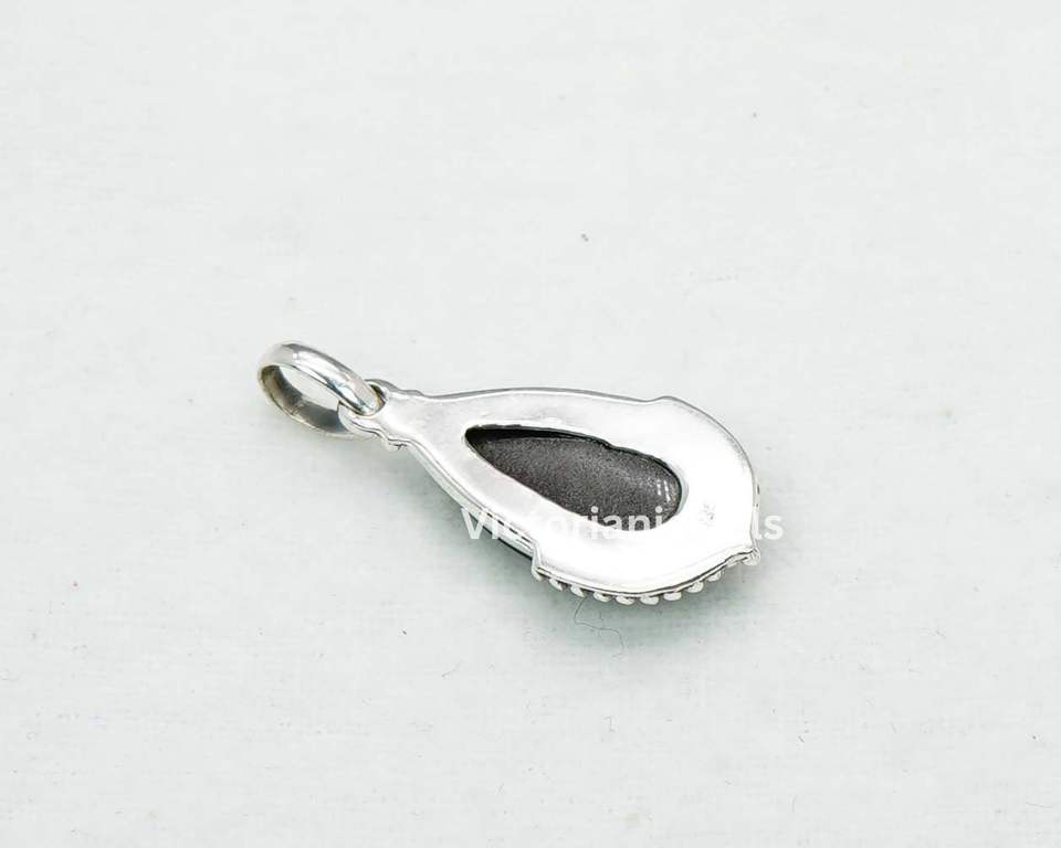 925หินออบซิเดียนสีรุ้งเดือนนวนิยายเงินสเตอร์ลิงพร้อมฐานหนามเตยรูปทรงลูกแพร์จี้เสน่ห์