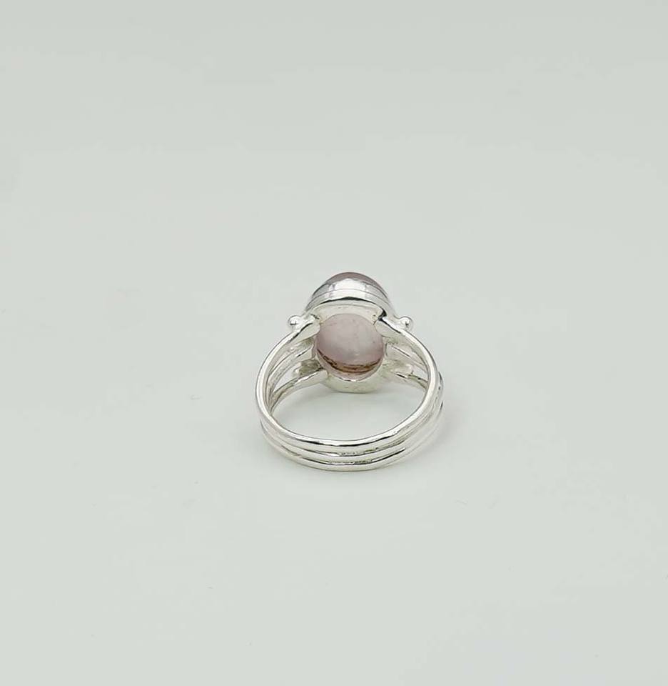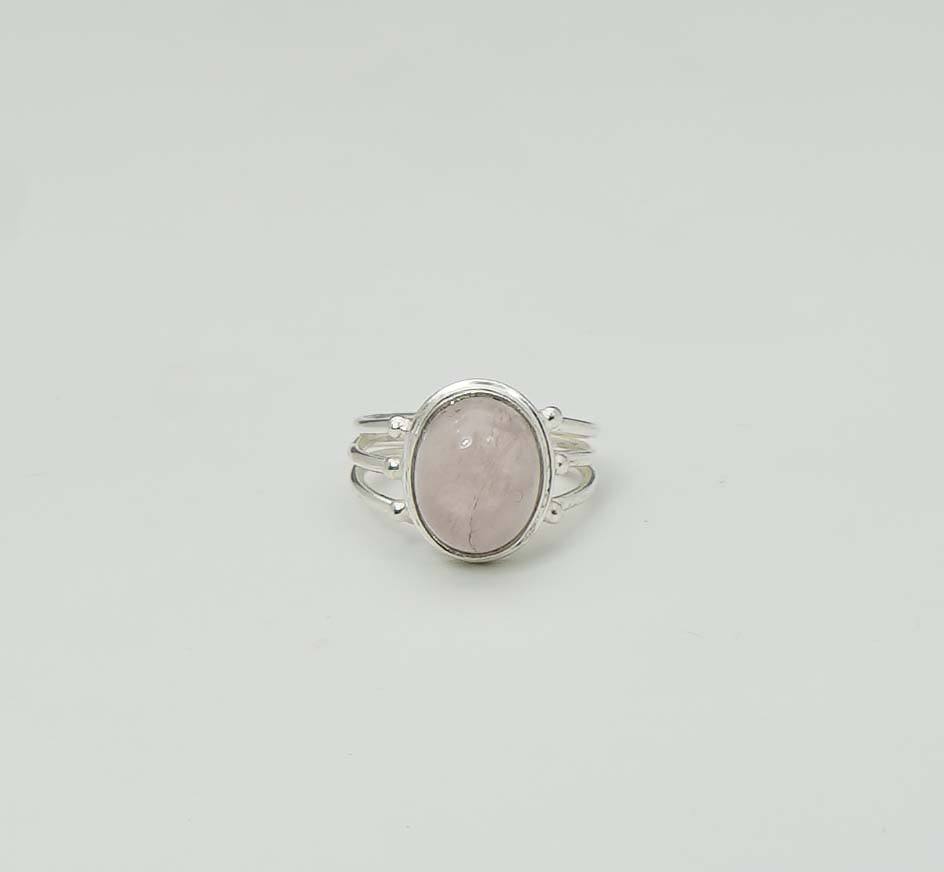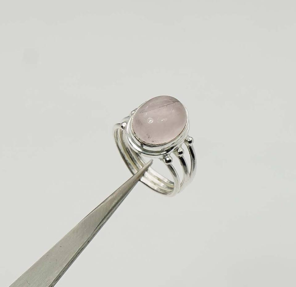 925เงินสเตอร์ลิงตุลาคมพลอยหินโรสควอตซ์พร้อมฐานหนามเตยรูปไข่หลายวงแหวนก้าน