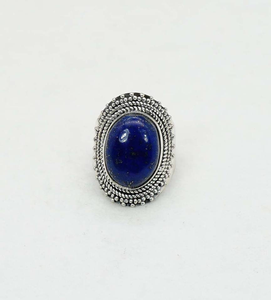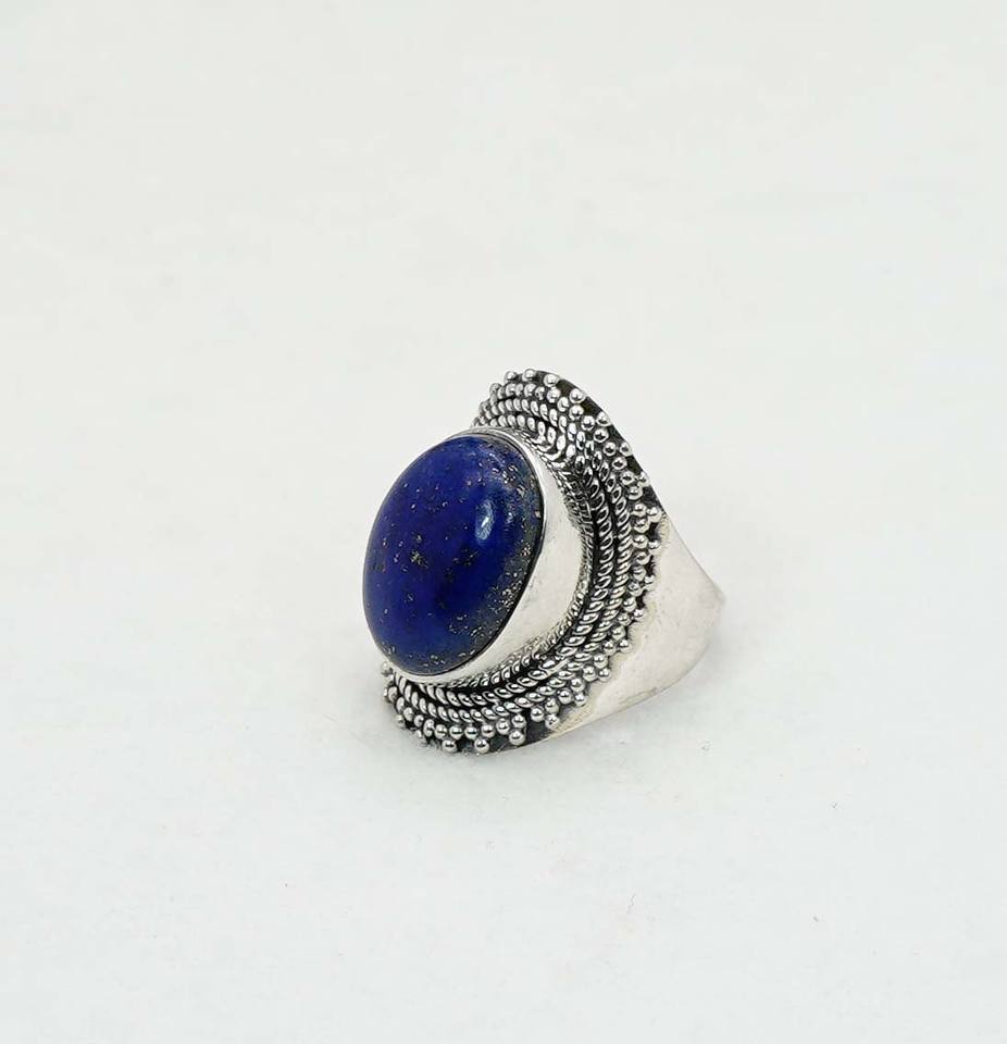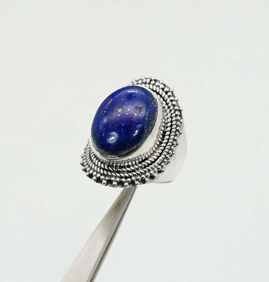 925ที่เป็นของแข็งเงินสเตอร์ลิงเดือนเกิด Lapis Lazuli พร้อมกรอบการตั้งค่าแหวนรูปไข่
