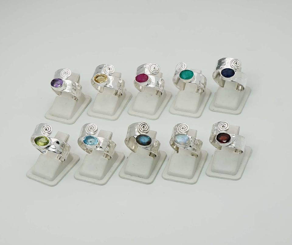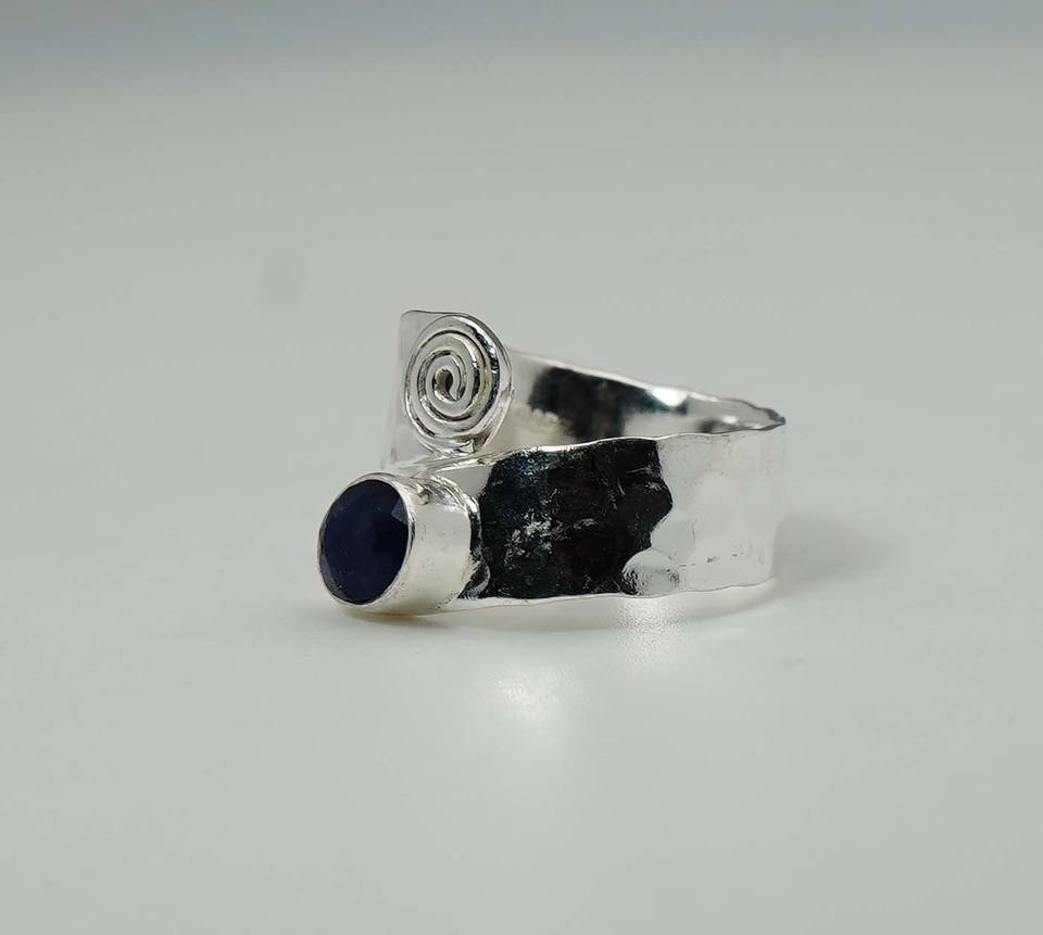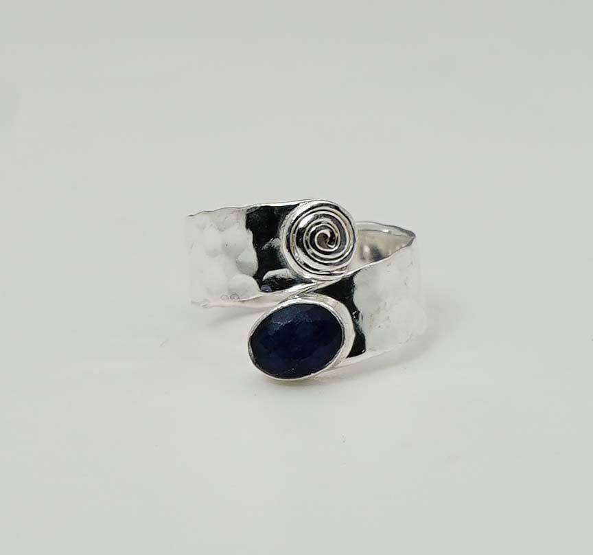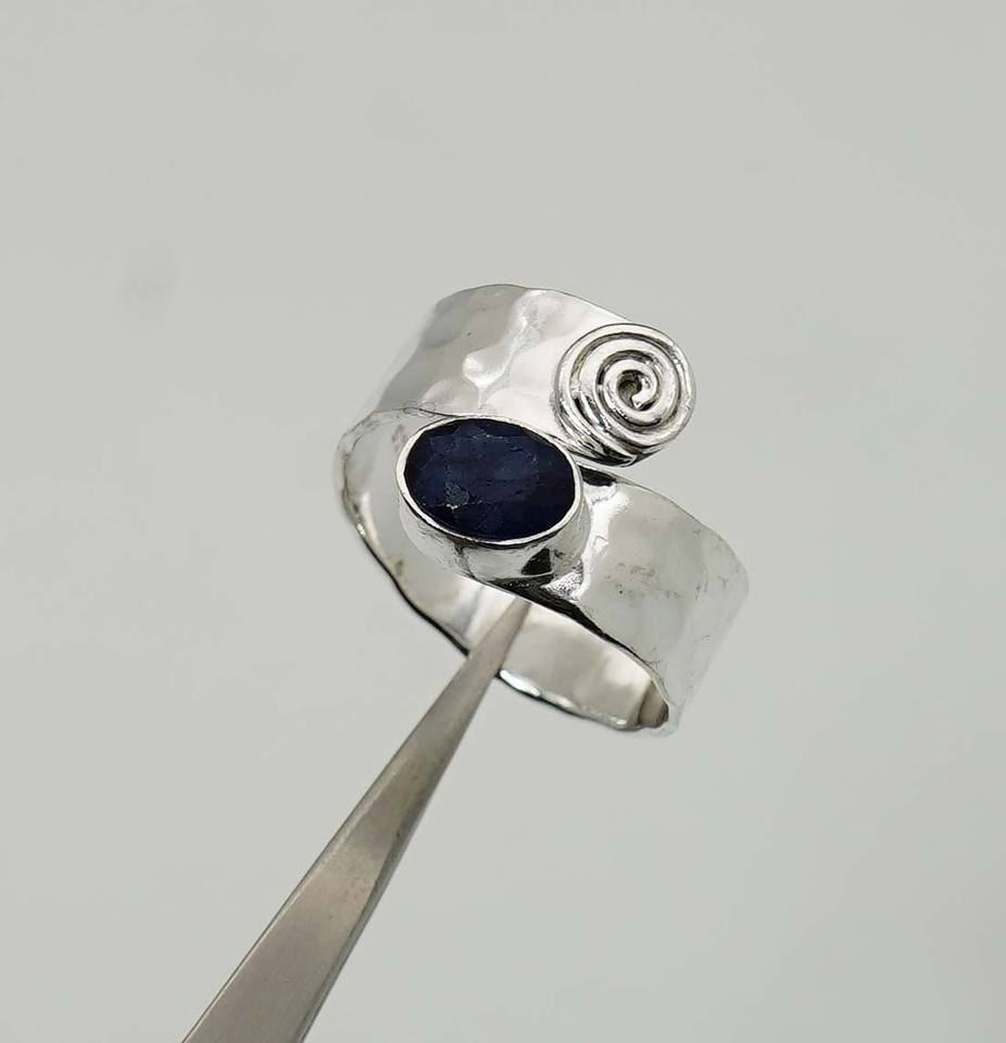 แหวนพลอยแซฟไฟร์เดือนเพื่อการ925สีเงินสเตอร์ลิงพร้อมตัวเรือนทรงรีแหวนปรับขนาดได้