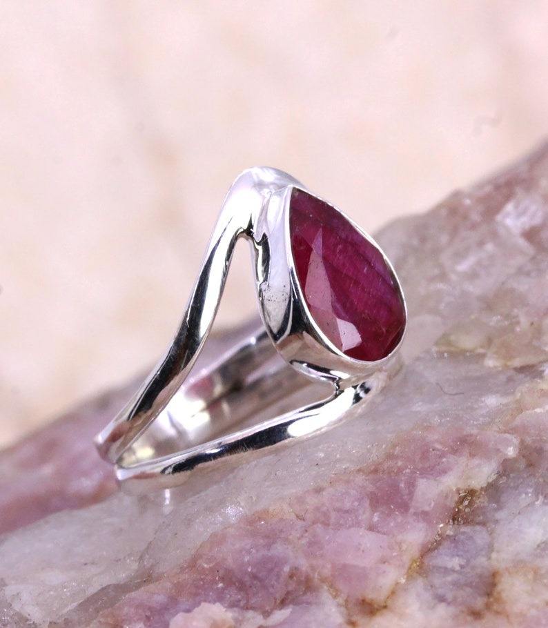 925 Solid Sterling Silver Cabochon Ruby Handmade Promise Ring Best Design Gemstone for Weddings & Parties Stamped Jewelry
