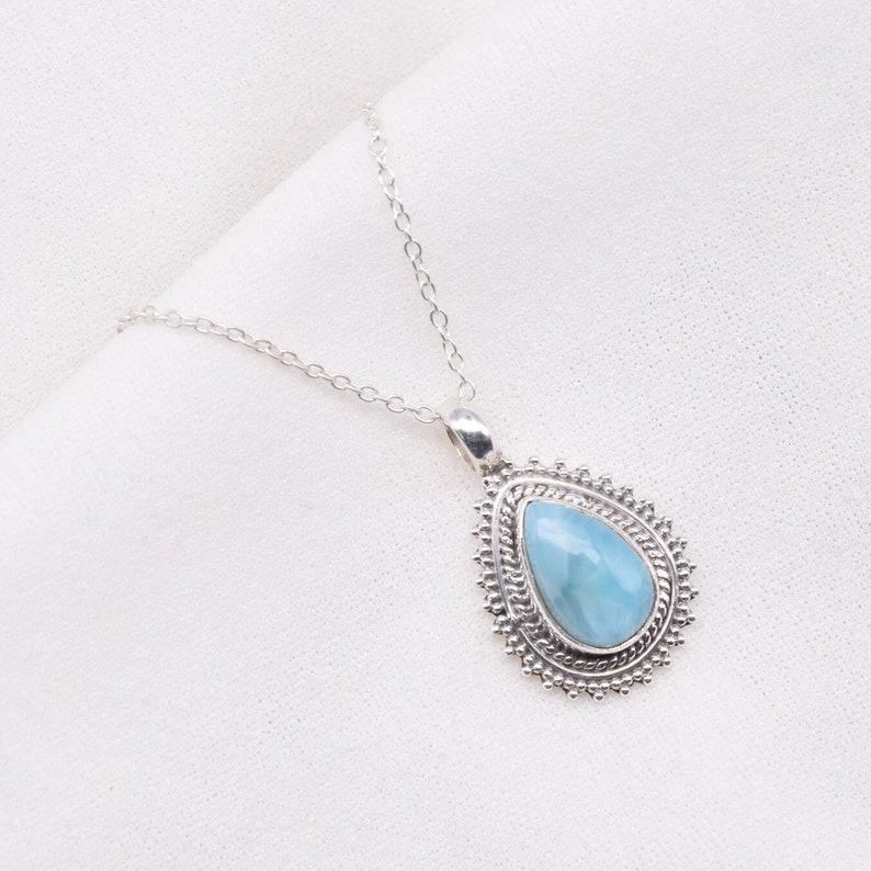 จี้อัญมณีลาริมาร์ประทับ925สำหรับสาวๆดีไซน์สมบูรณ์แบบ925เงินแท้พร้อมเครื่องประดับชุบโรเดียม