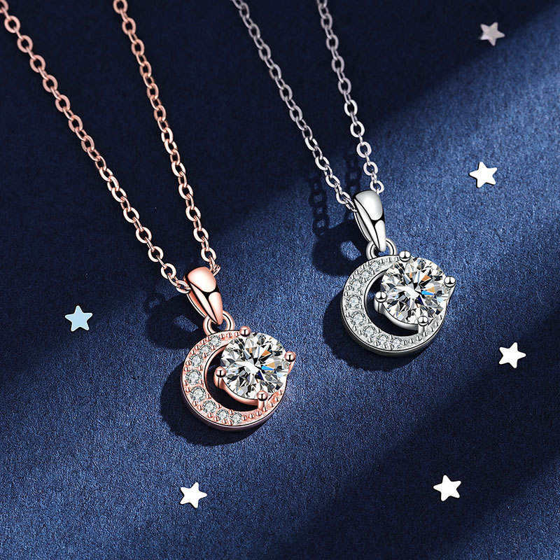 สร้อยคอจี้เงินแท้ 925 ประดับมอสซาไนต์ 0.50 กะรัต รูปพระจันทร์เสี้ยว ดีไซน์ทันสมัย หรูหราเบาๆ เหมาะเป็นของขวัญงานแต่งงาน งานเลี้ยง สำหรับผู้หญิง