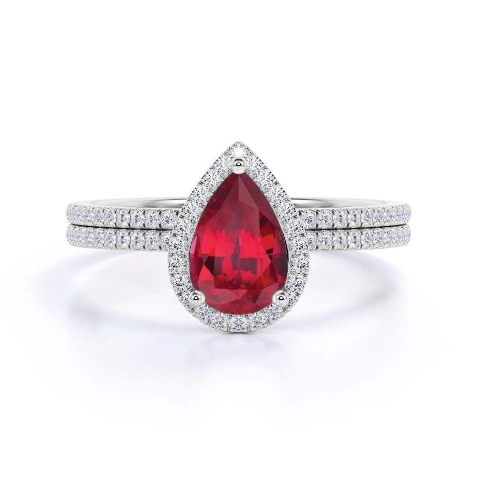 แหวนเงินแท้ 925 ประดับทับทิมสังเคราะห์ทรงลูกแพร์ 1.50 กะรัต ชุบทองแบบวินเทจ สำหรับงานหมั้นหรืองานเลี้ยง
