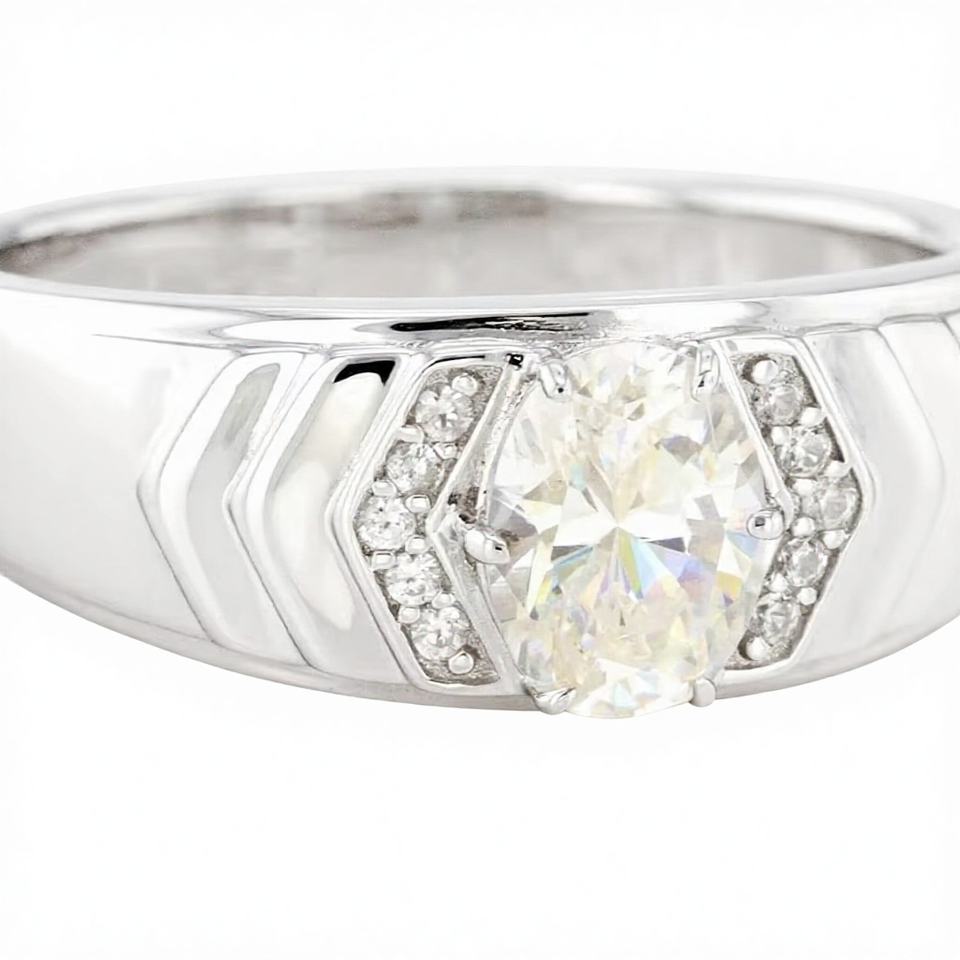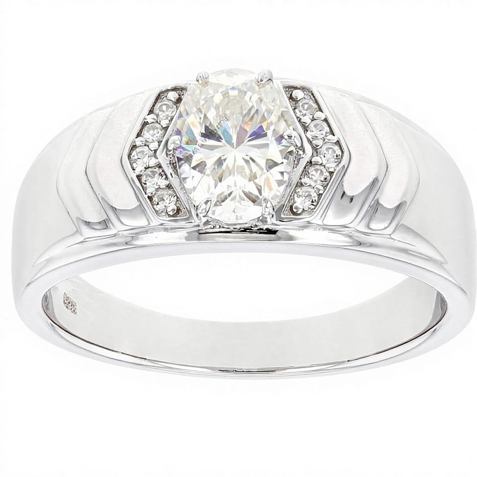 แหวนแต่งงานผู้ชายเงินแท้ 925 ประดับโมอิสซาไนต์ทรงรี 1.60 กะรัต ผลิตในห้องปฏิบัติการ ตัวเรือนแบบหนามเตย สไตล์คลาสสิก เหมาะสำหรับงานปาร์ตี้