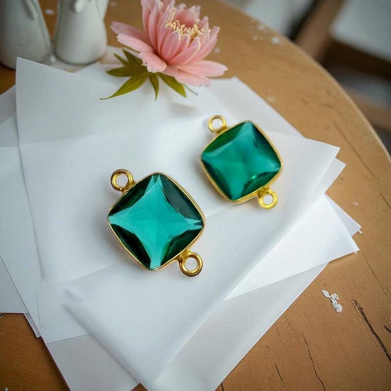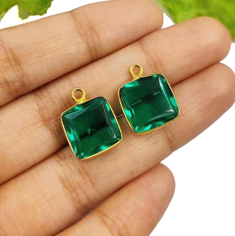 925สเตอร์ลิงเงิน10x10มม. ควอตซ์สีเขียวเขียวหัวนกเป็ดน้ำธรรมชาติตั้งค่าฝาเชื่อมห่วงเดี่ยวทำให้เครื่องประดับ
