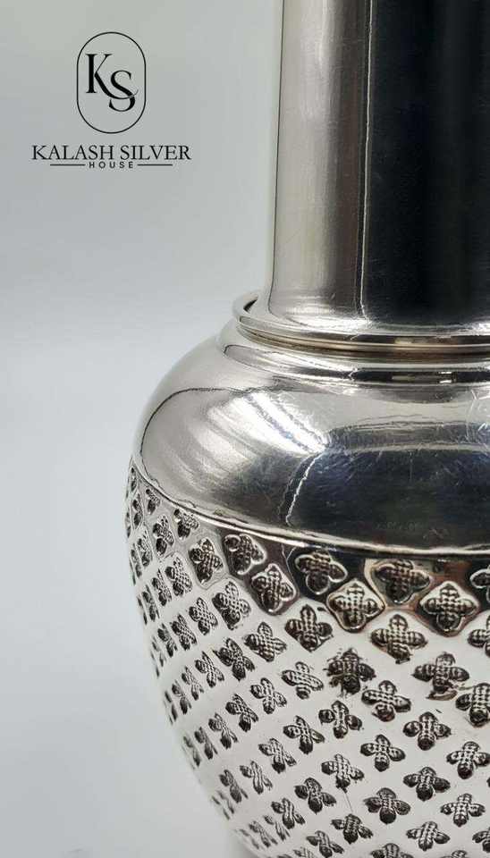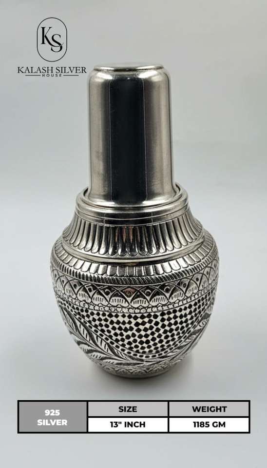 ชุดภาชนะสำหรับพิธีกรรมทำจากเงินแท้ 925 ขนาด 13 นิ้ว พร้อมแก้วกลับด้าน และลวดลายแกะสลักแบบสองชั้น
