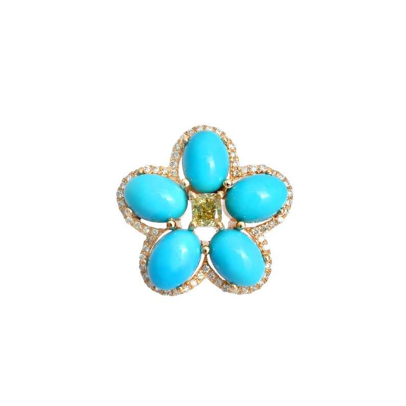 จี้ดอกไม้เทอร์คอยส์ชุบทอง14K สีเงิน925ทำด้วยมือเพทายสีเหลืองเครื่องประดับหรูหราสำหรับผู้หญิง