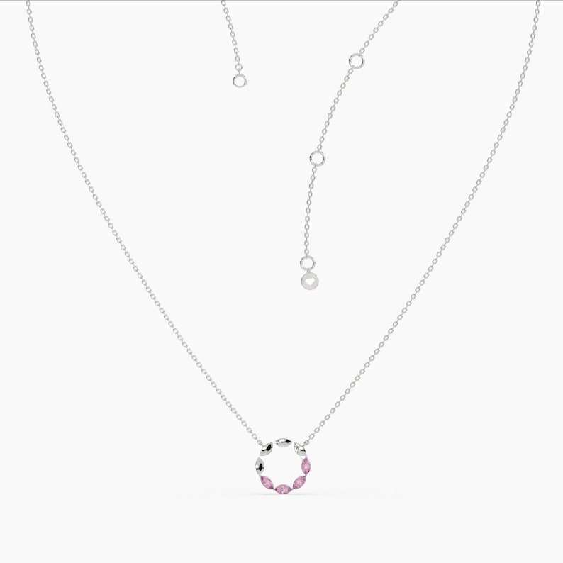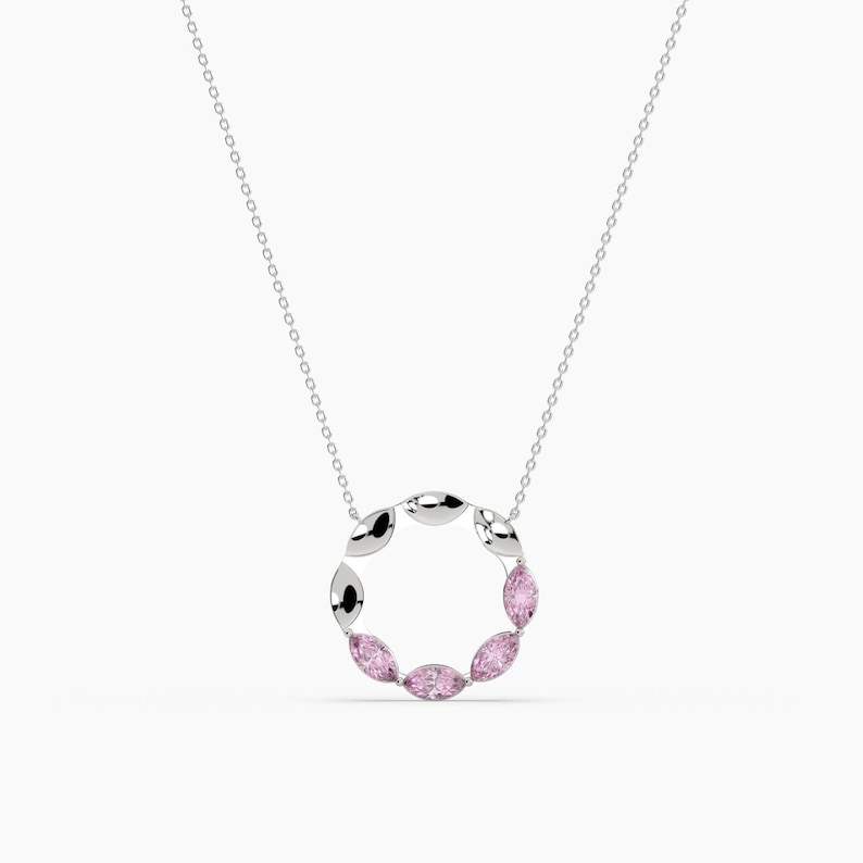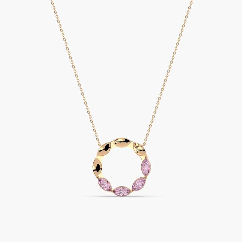ทอง14K มาร์คีส์สีชมพูเพทายสร้อยคอวงกลม