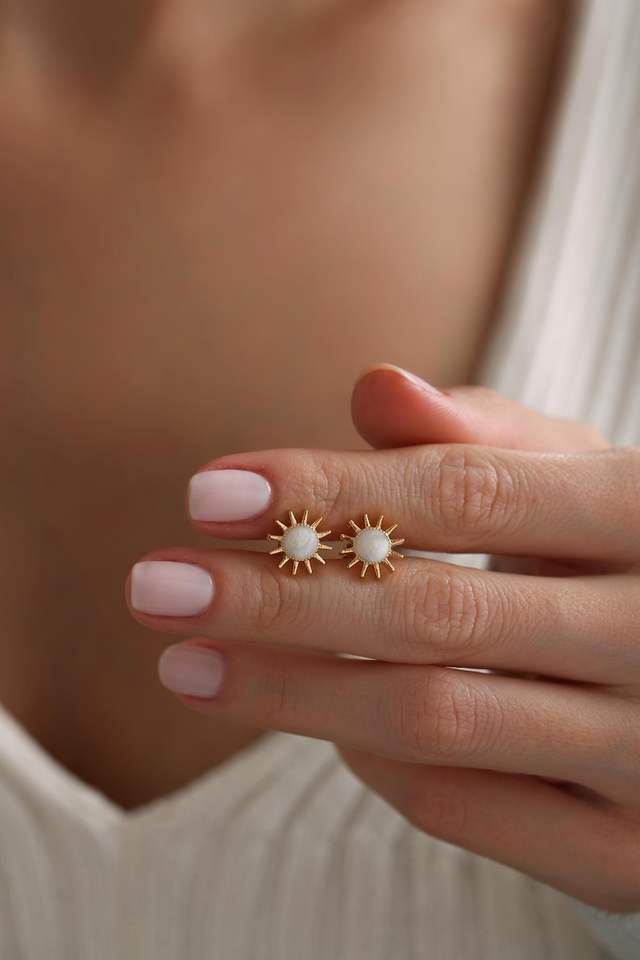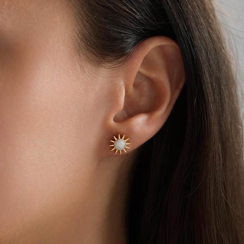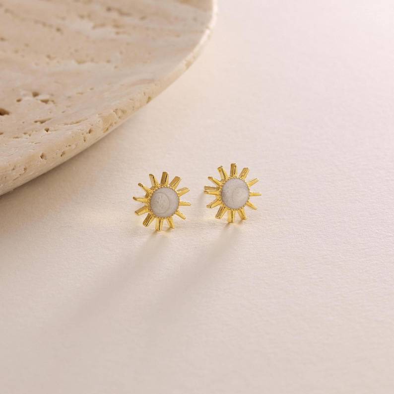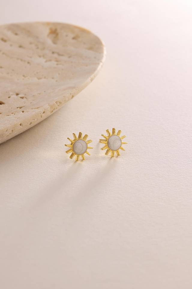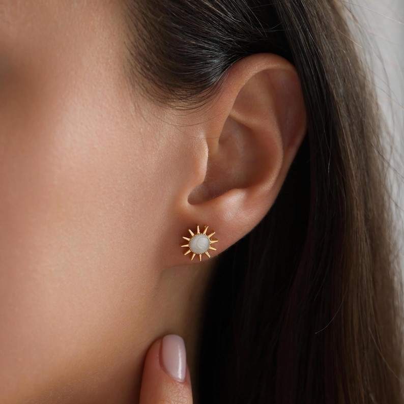 ต่างหูเงินแท้ 925 ชุบทอง 14K ประดับมุกเปลือกหอยเคลือบสีรูปพระอาทิตย์เล็กๆ น่ารัก สไตล์ Celestial เหมาะสำหรับใส่ทุกวันหรือเป็นของขวัญวันครบรอบ