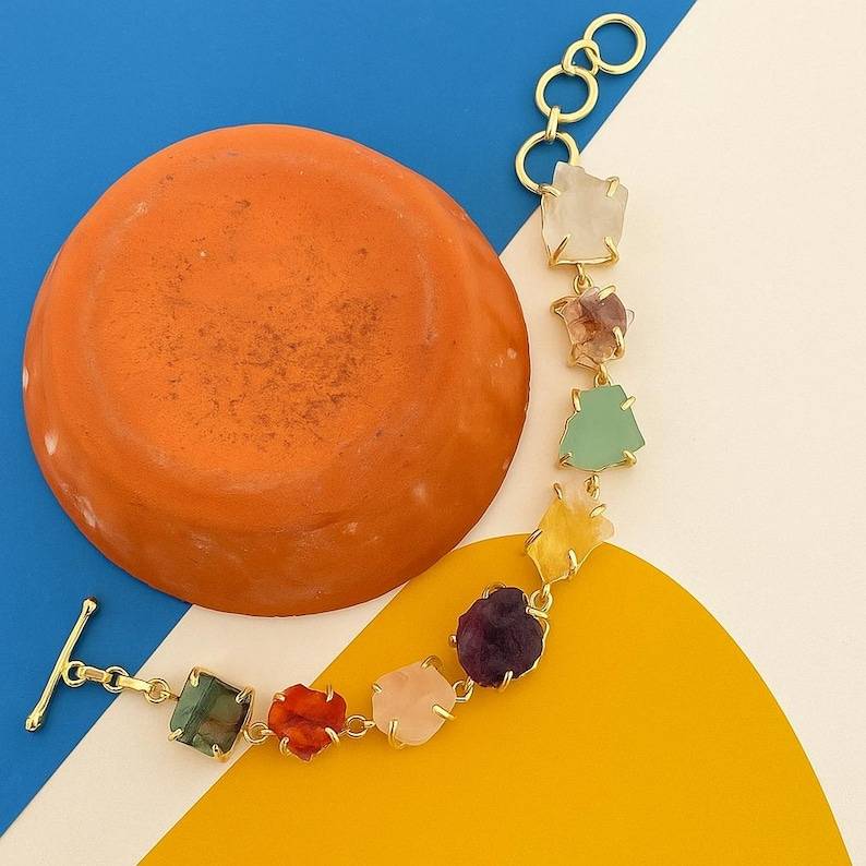 สร้อยข้อมือประดับอัญมณีหลากสี เปล่งประกาย ดีไซน์กว้างขวาง