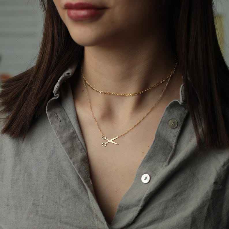 925เงินสเตอร์ลิง14K ชุบทองกรรไกรแบบมินิมอลลิสต์จี้เสน่ห์เครื่องประดับสไตลิสโซ่เส้นเล็กสร้อยคอผู้หญิง