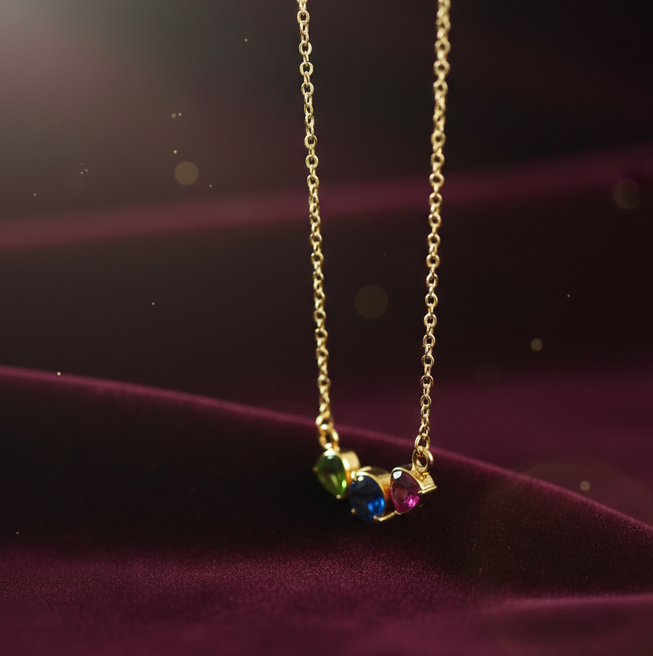 สร้อยคอประดับเพชรหลากสีทรงกลมและทรงสามเหลี่ยม