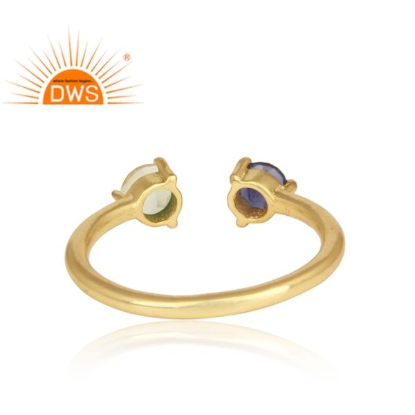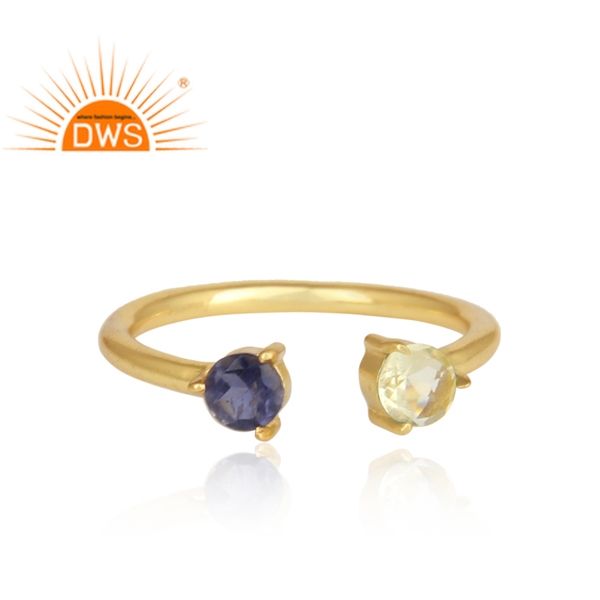 แหวนเงินแท้925ชุบทอง18K ประดับมะนาวโทแพซและพลอย iolite แบบปรับได้สำหรับเป็นของขวัญสำหรับผู้หญิง
