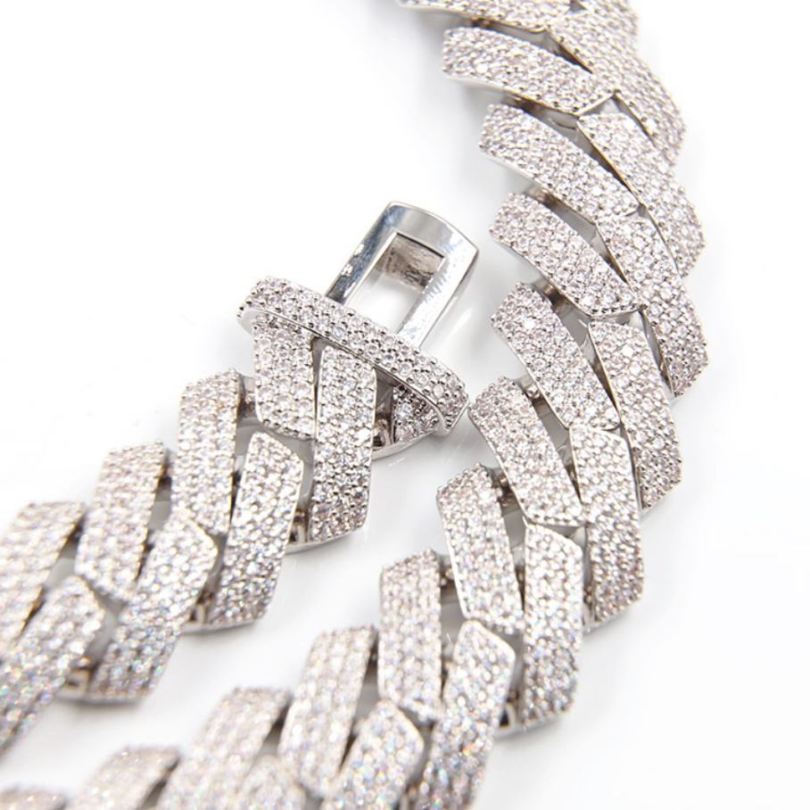 สร้อยคอและกำไลข้อมือแบบ Cuban Link ชุบทอง 14k ประดับด้วยโมอิสซาไนต์ VVS ขนาด 20 มม. ทำจากเงินแท้ 925