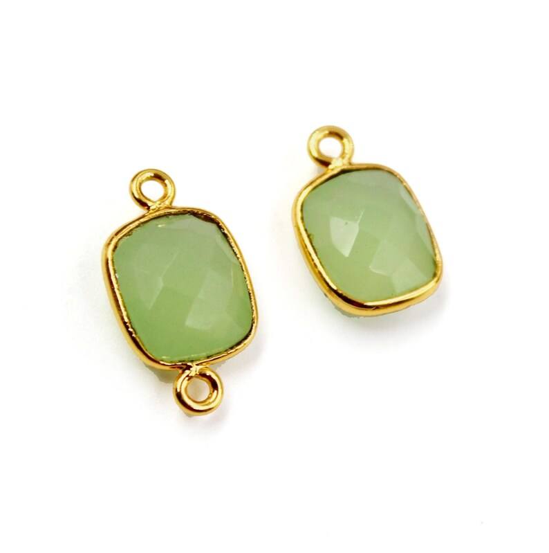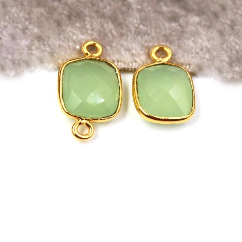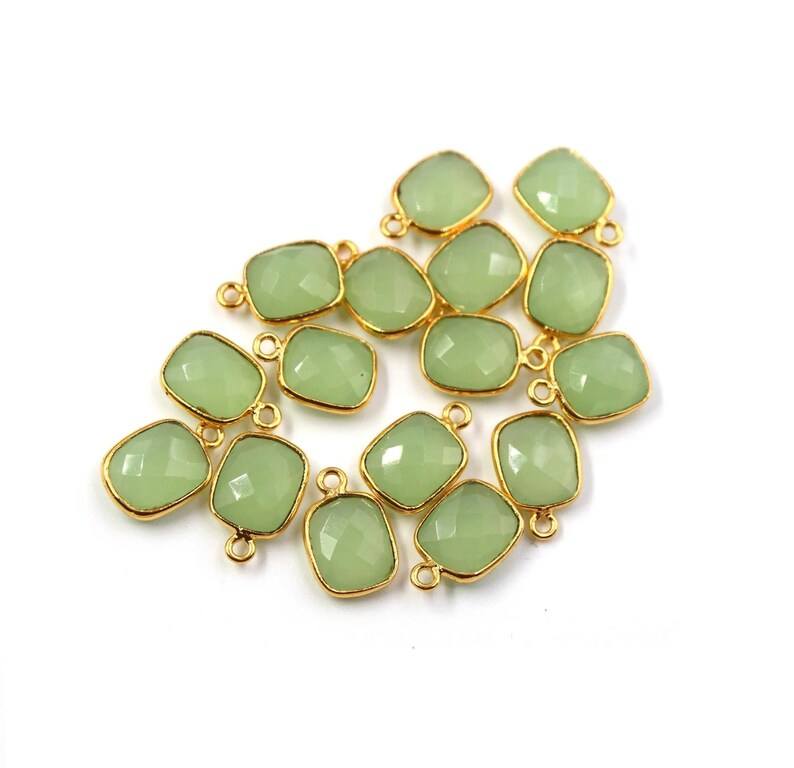 925เงินสเตอร์ลิง8x10มม. สีเขียวธรรมชาติพรีไนท์แปดเหลี่ยมการตั้งค่าฝาปิดการเชื่อมโยงห่วงเดียวทำให้เครื่องประดับ
