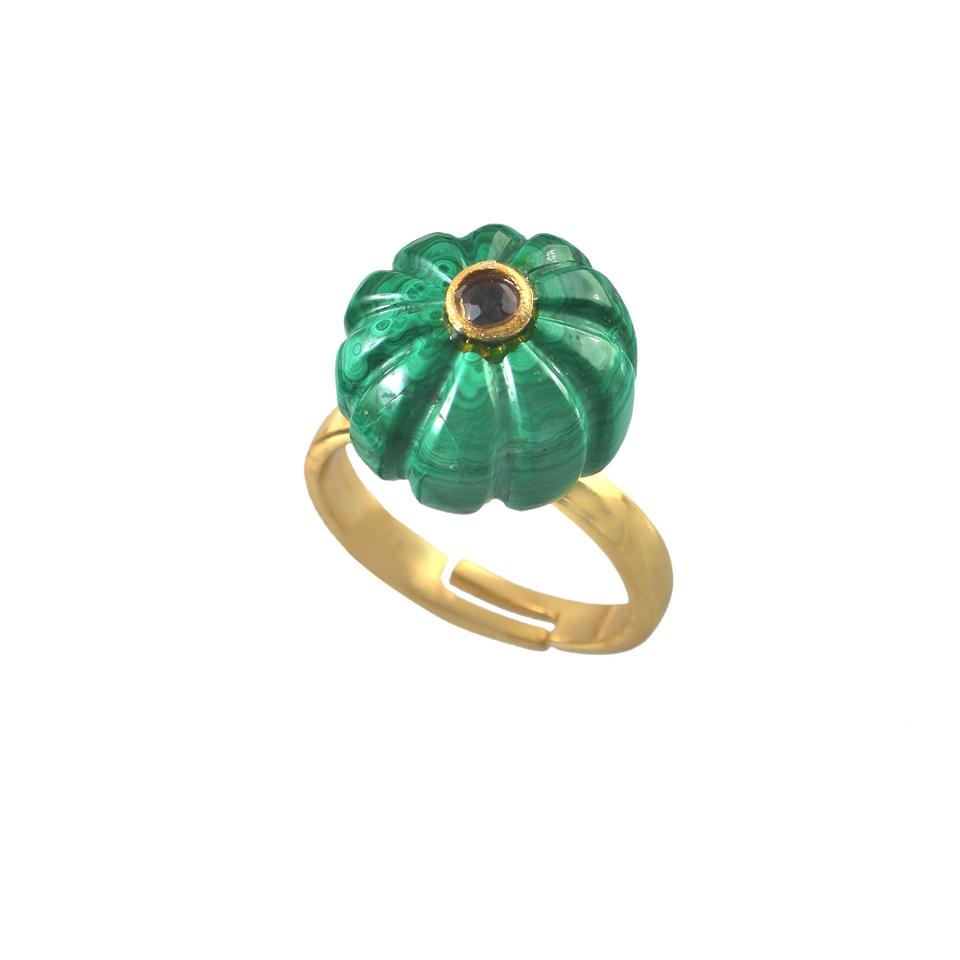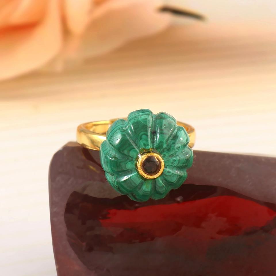 แหวนฟักทองสีเงินสเตอร์ลิง925แบบปรับได้สไตล์โบฮีเมียนสีทองงานแกะสลักมาลาไคต์สำหรับงานแต่งงานแหวนหมั้น