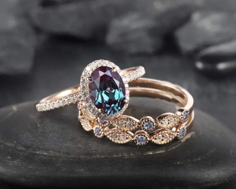 แหวนเงินแท้ 925 ประดับอะเล็กซานไดรต์สังเคราะห์ 1.1 กะรัต ดีไซน์วงแหวนล้อมเพชร สไตล์วินเทจ ชุดแต่งงานทองคำขาว 14K งานแฮนด์เมดสุดคลาสสิก