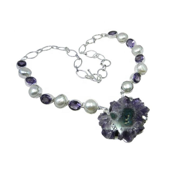 สร้อยคออัญมณีหลากสีหลายรูปทรงสำหรับใส่ใน925เงินสเตอร์ลิงประดับด้วยพลอยโรเดียมตัดสีเขียวมรกต