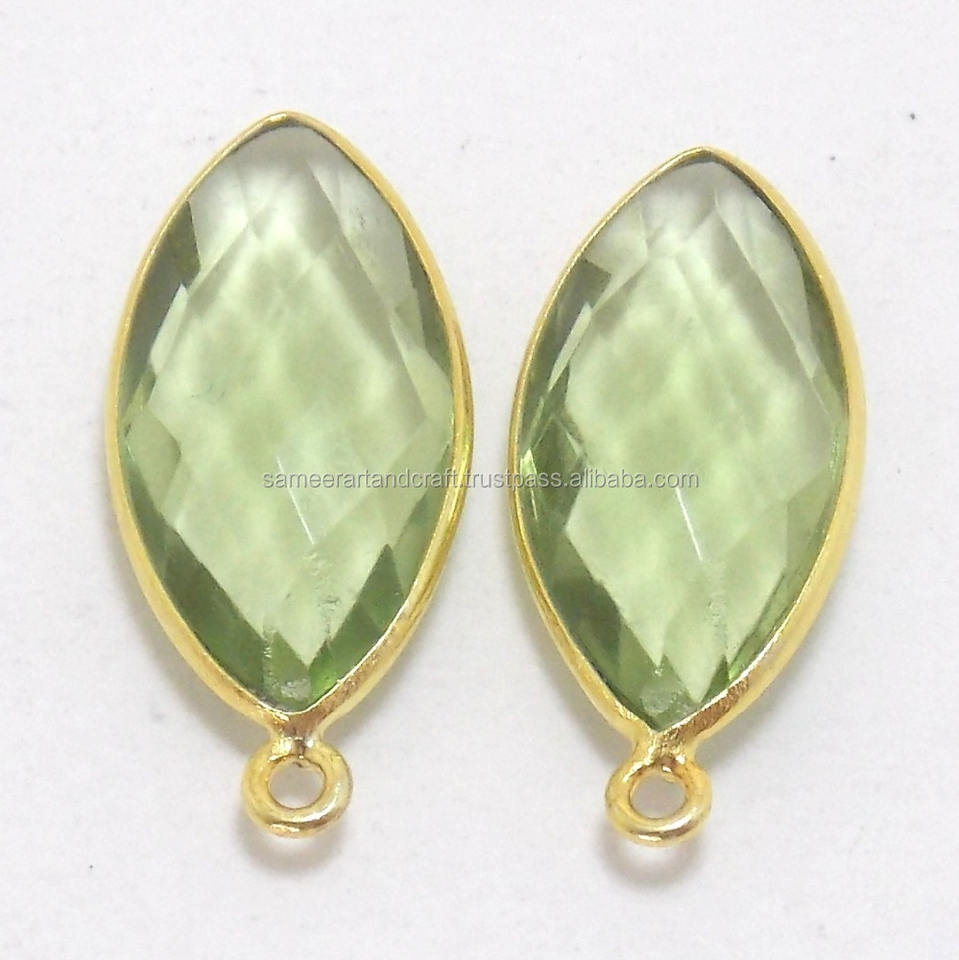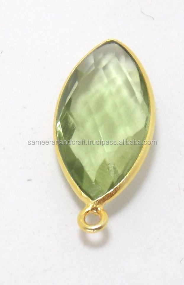 925 เงินสเตอร์ลิงอเมทิสต์ธรรมชาติอัญมณีเครื่องประดับ Marquise รูปร่างเครื่องประดับชุบทองเดี่ยว Bail BEZEL Connector
