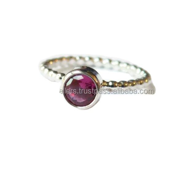แหวนพลอยควอตซ์ทำด้วยมือสีทองแหวนพลอยอเมทิสต์เงินสเตอร์ลิงสำหรับ925