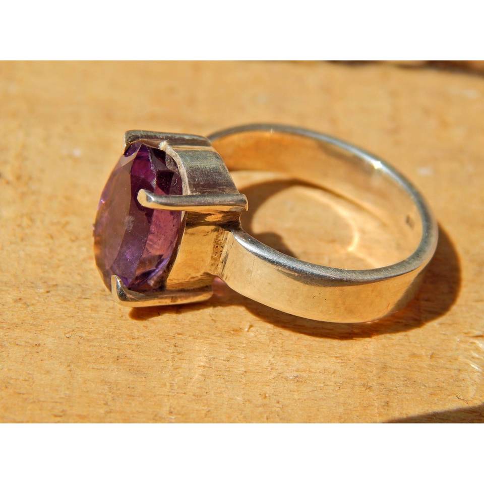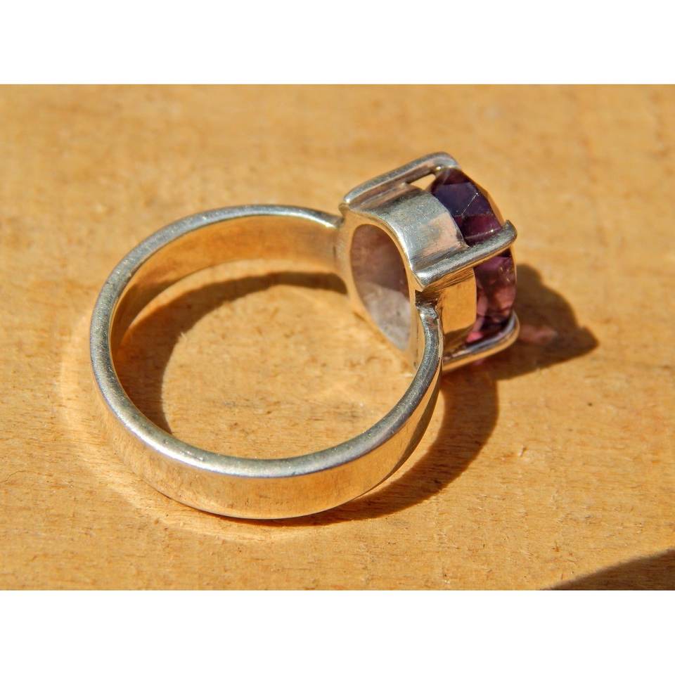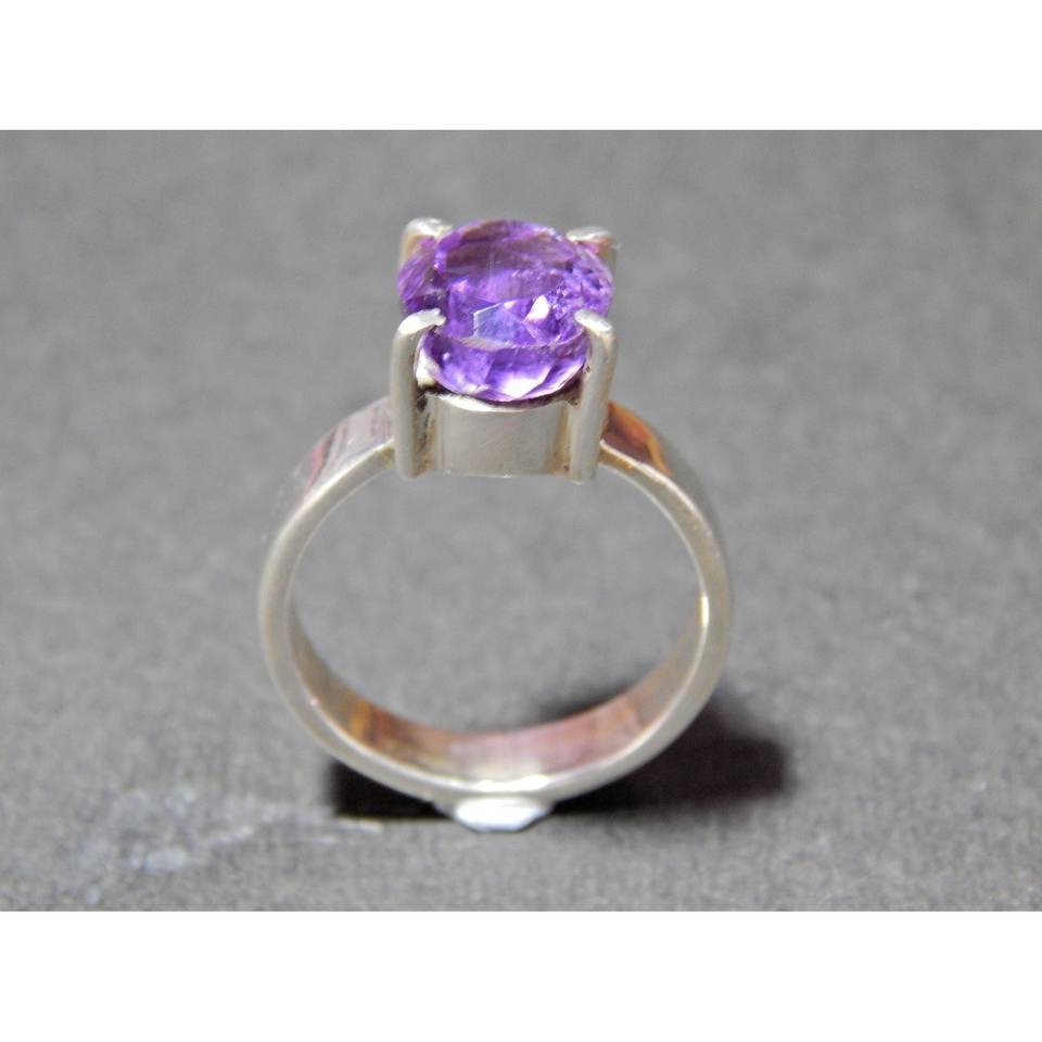 แหวนเงินแท้ 925 ประดับพลอยอเมทิสต์ งานแฮนด์เมด เครื่องประดับธรรมชาติ ของขวัญสำหรับเธอ พร้อมพลอยอเมทิสต์เจียระไน R0119-GS