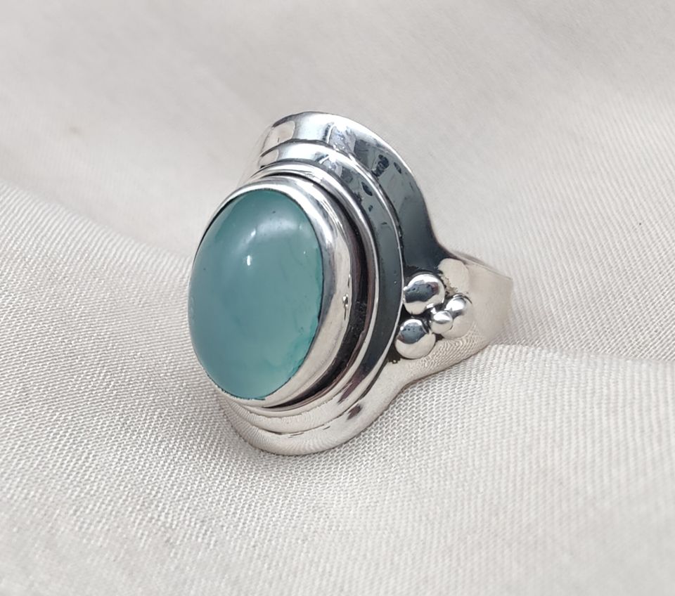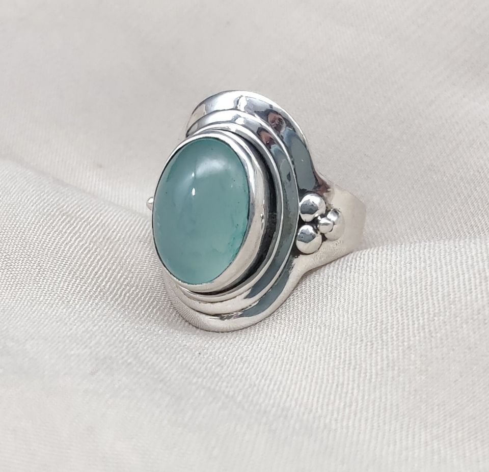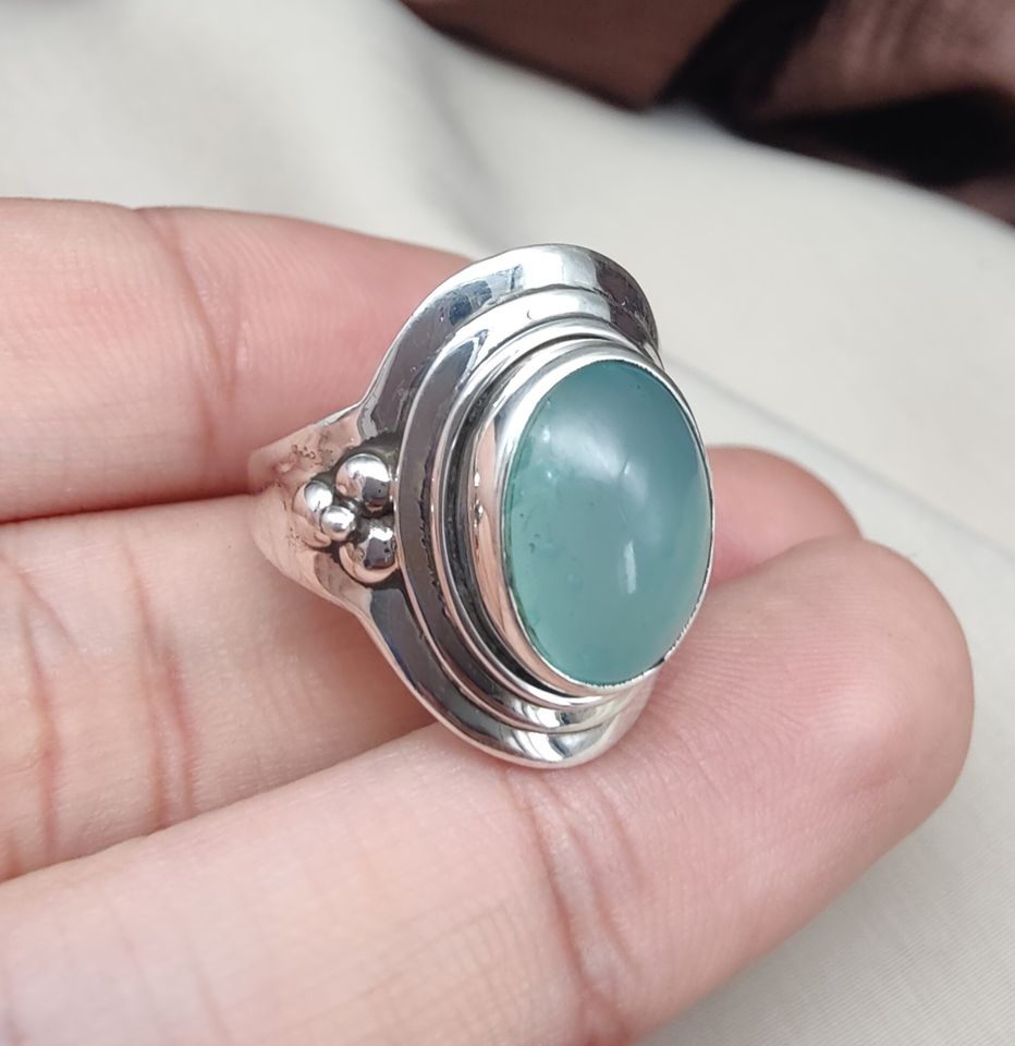 แหวนพลอยสีเงินสเตอร์ลิงรูปวงรี925อัญมณีทรงวงรีแบบมีขอบทันสมัยทำด้วยมือจากธรรมชาติขายส่ง