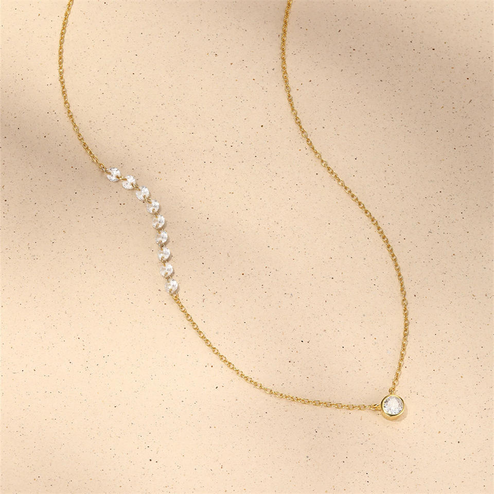ชุดเครื่องประดับสร้อยคอและกำไลข้อมือเงินแท้ 925 ประดับเพชร CZ ทรงไม่สมมาตร