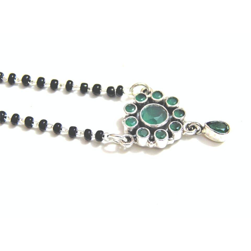 925สร้อยคอเงิน Aventurine แบบโซ่ลูกปัดสีดำจี้ดีไซน์ดอกไม้สวยสร้อยคอจี้แฟชั่นแบบดั้งเดิม
