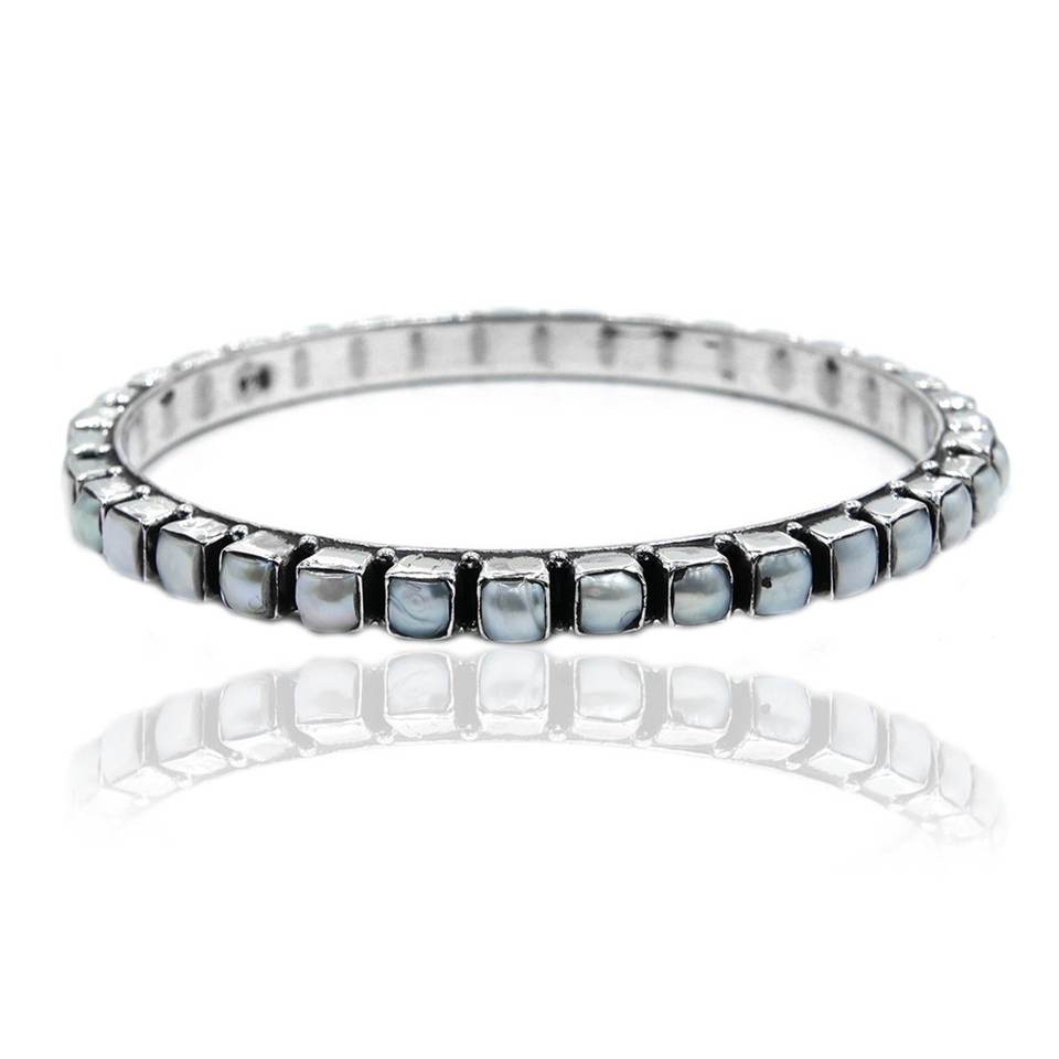 กำไลเงินสเตอริ่ง925ทำด้วยมือกำไลอัญมณีน้ำจืดธรรมชาติขนาด2-6เครื่องประดับเงินกำไลข้อมือไข่มุก