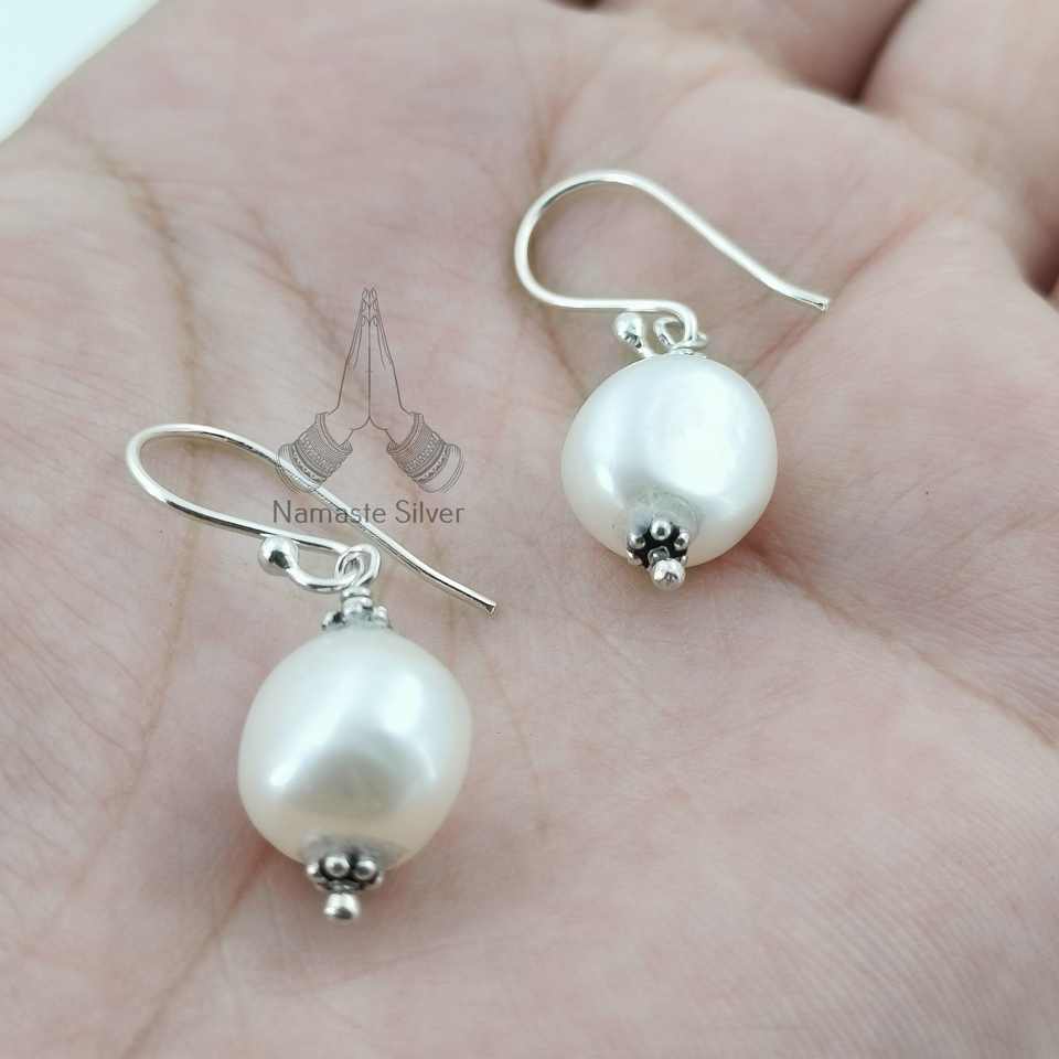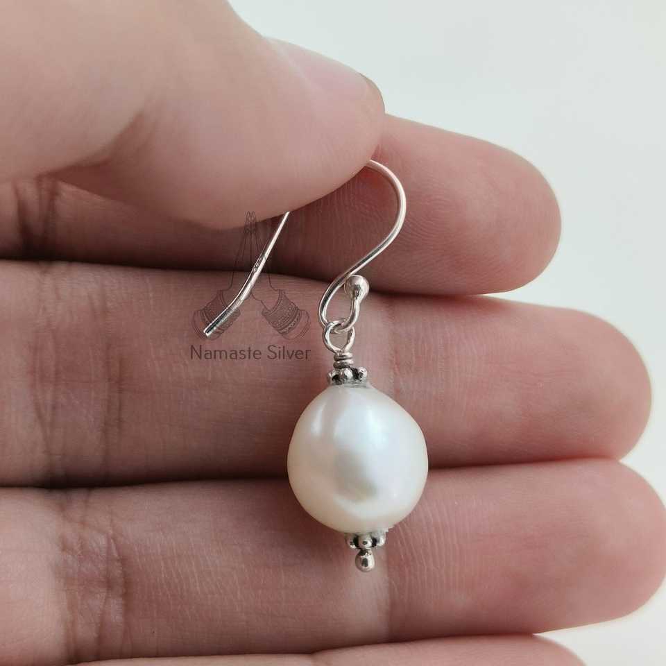 ต่างหูมุกบาร็อคเงินแท้ 925 รูปทรงกลมทำมือจากมุกน้ำจืด เครื่องประดับประจำเดือนมิถุนายน