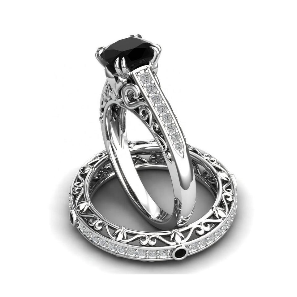 ชื่อผลิตภัณฑ์:ชุดแหวนแต่งงานหินโอนิกซ์สีดำสวยสีเงินสเตอร์ลิง925
