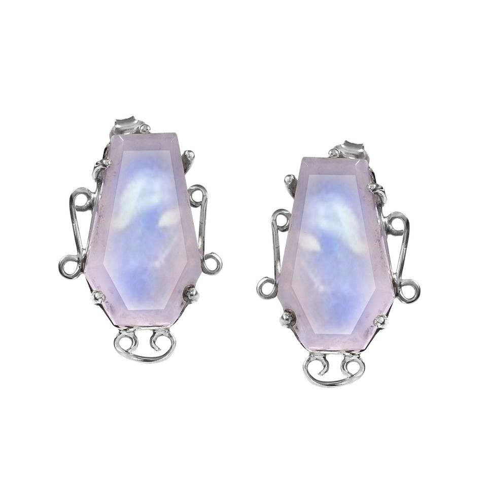 ต่างหูพลอยสีเงินสเตอร์ลิงทำมือรูปโลงศพสีรุ้งประดับมุกและเพชร925สไตล์น่ารัก
