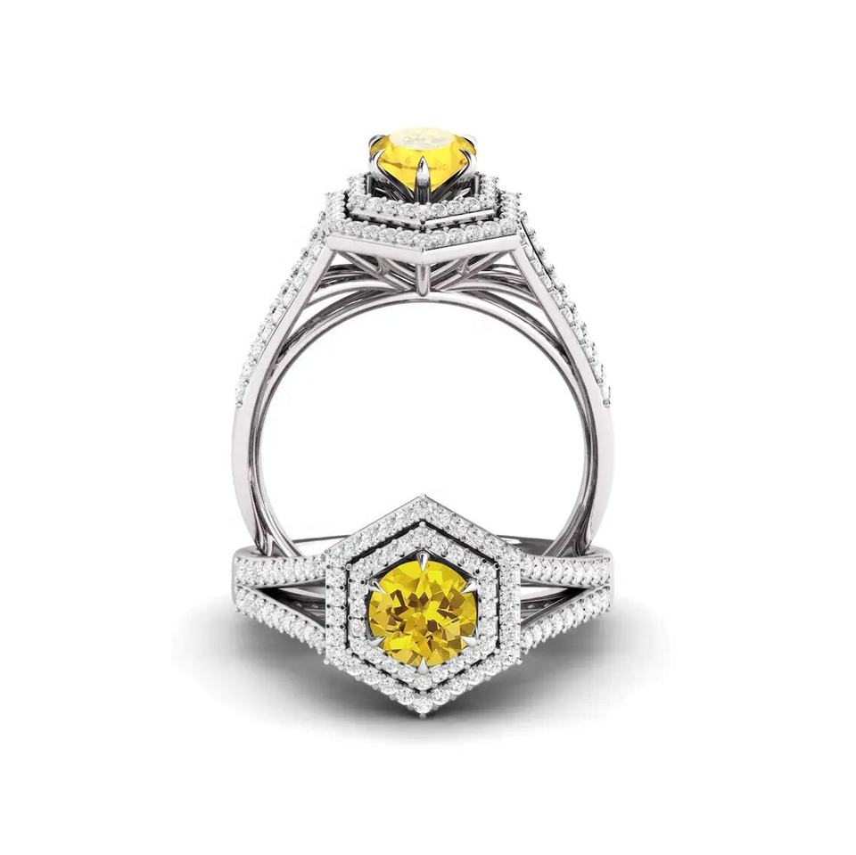 แหวนพลอยแซฟไฟร์สีเหลืองสีเงินสเตอร์ลิง925แหวนแต่งงาน