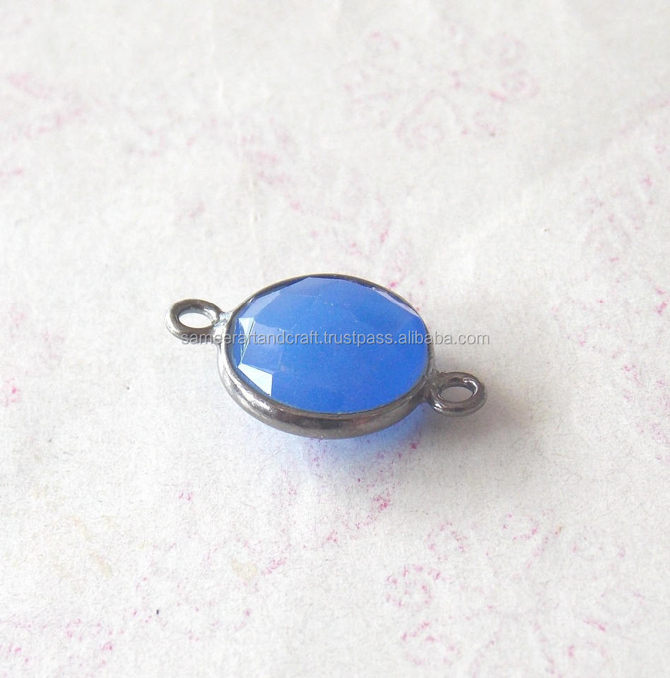 ขั้วต่อขอบพลอยคาลซิโดนีสีน้ำเงิน