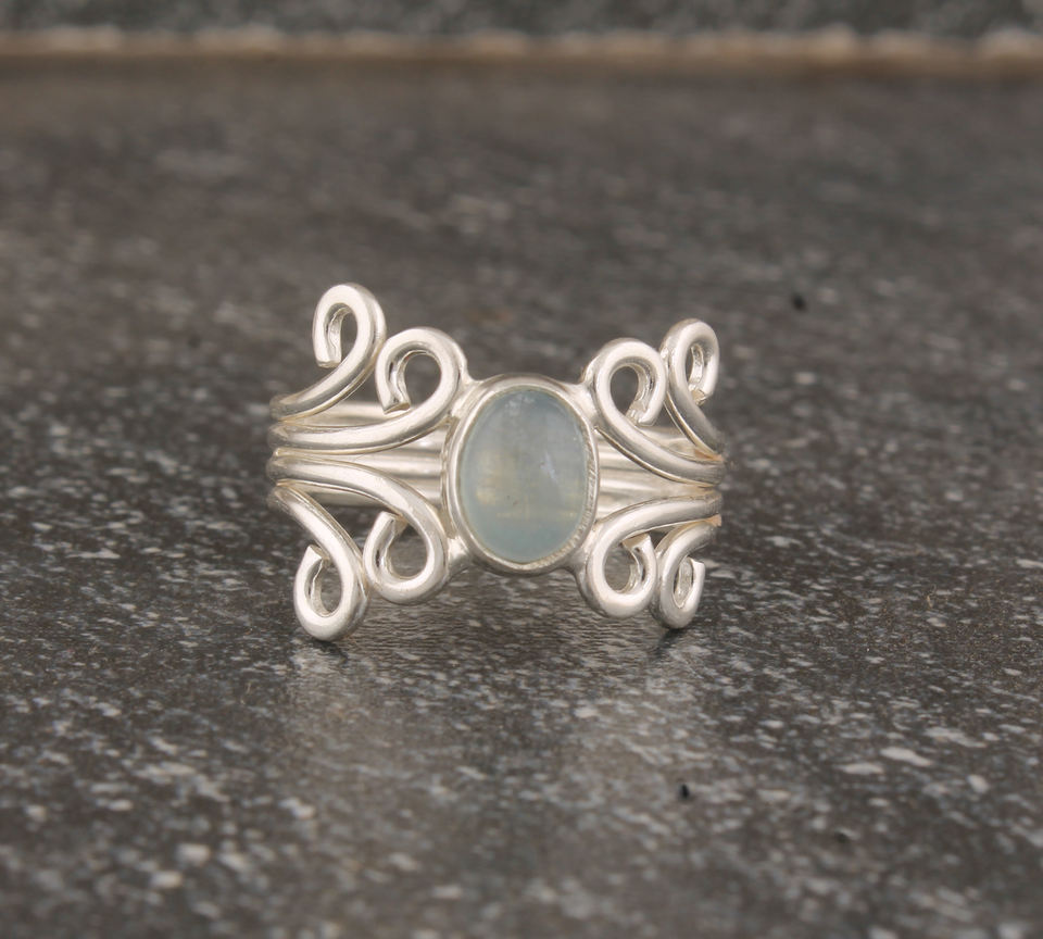 925 Sterling Silver Bezel Setting Brilliant Cut Aquamarine Gemstone Handmade Classic Boho Dainty Solitaire Ring Unisex Wedding