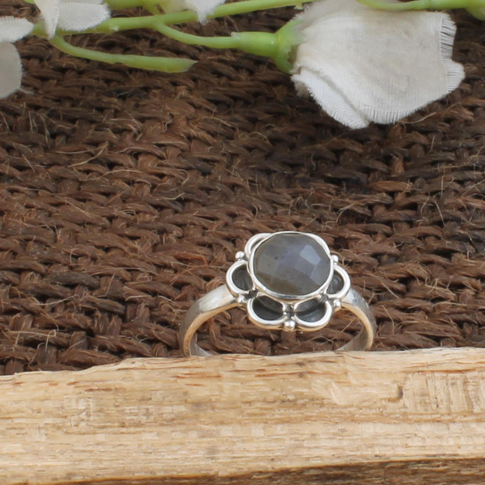 แหวนเงินแท้ 925 ประดับลาบราดอไรต์ทรงเหลี่ยมเจียระไนแบบบริลเลียนท์ งานแฮนด์เมด สไตล์โบโฮคลาสสิก เรียบหรู แหวนเดี่ยว รับรองโดยเจไพร์ สำหรับทั้งชายและหญิง