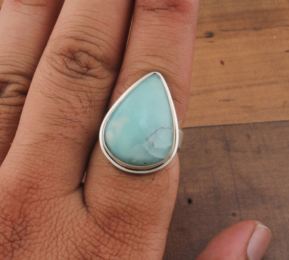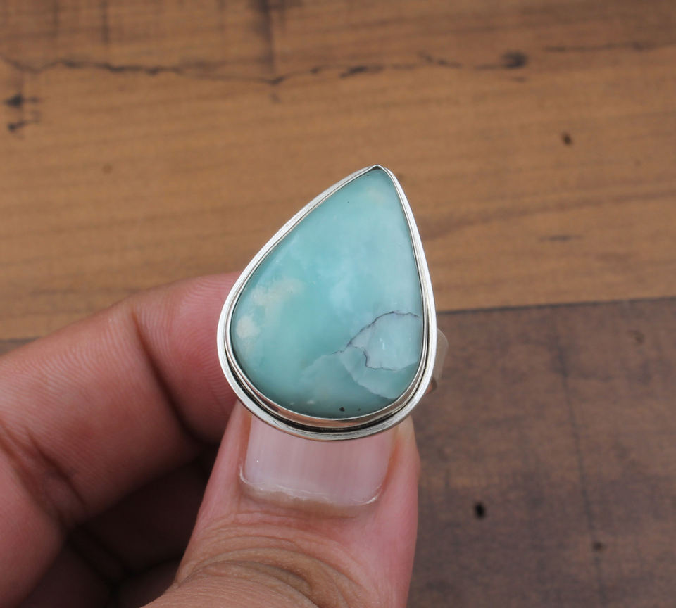 แหวนพลอยลาริมาร์ธรรมชาติทำด้วยมือแบบโบฮีเมียนแบบคลาสสิก925เรือนสีเงินสเตอร์ลิงแหวนหมั้นสำหรับงานแต่งงานแบบทั้งชายและหญิง